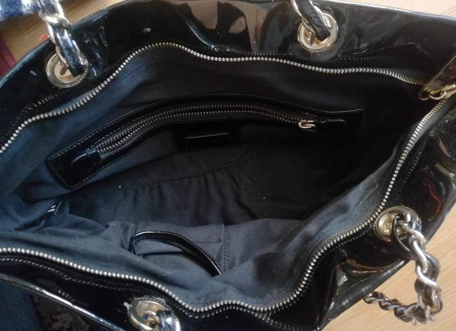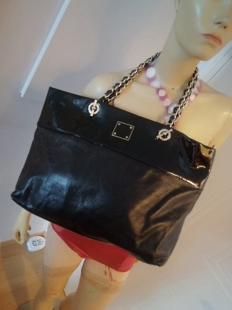 90s Vintage Jaeger Leather Shoulder Bag with Bold Gold Chain