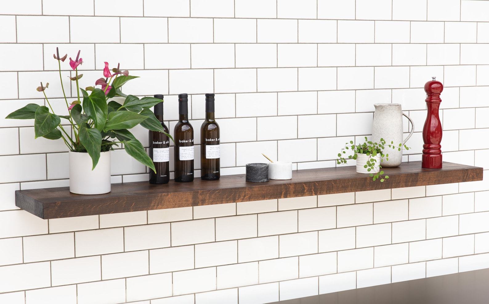 - Alder Solid Hardwood Floating Shelf with a smooth finish