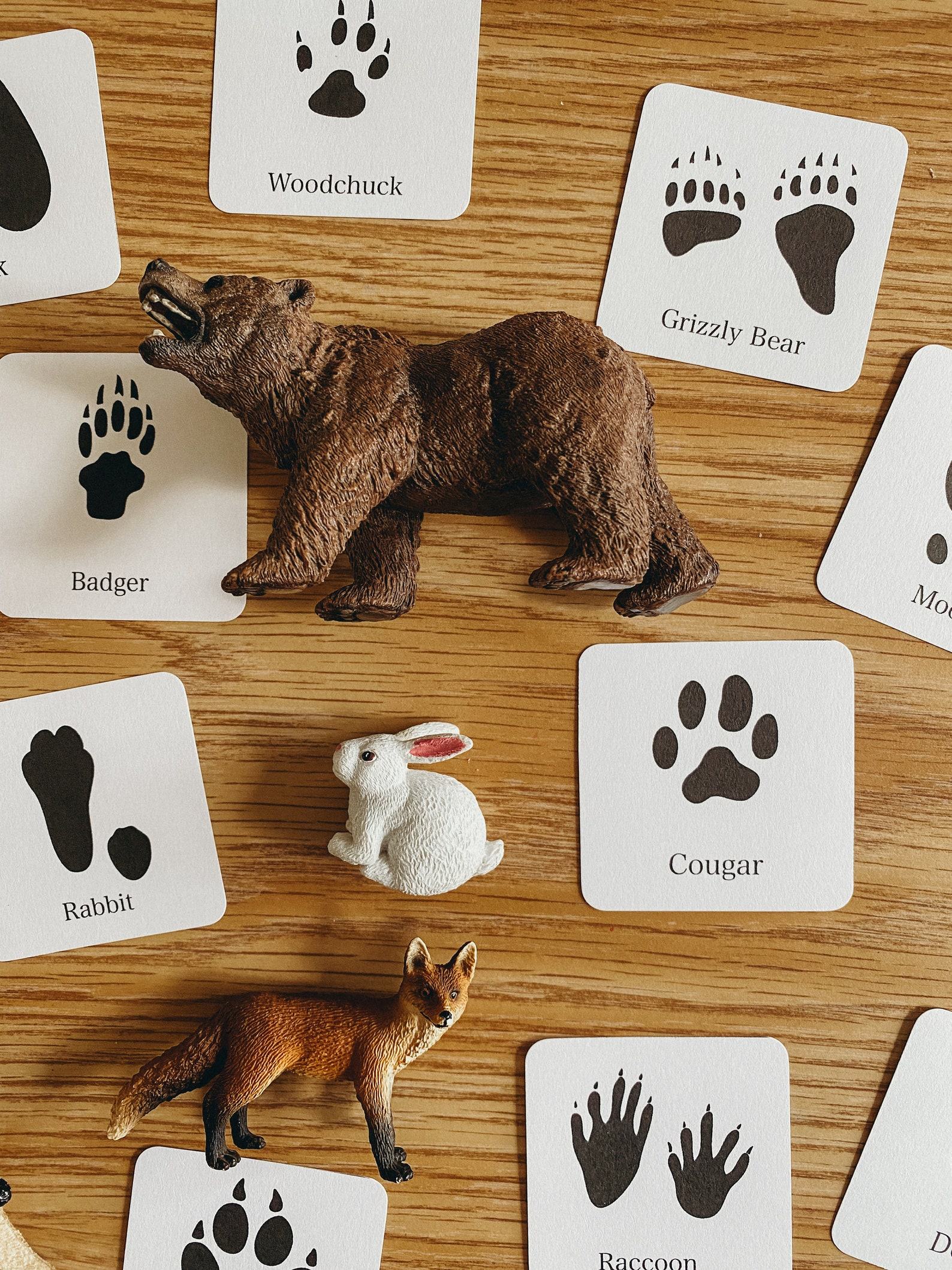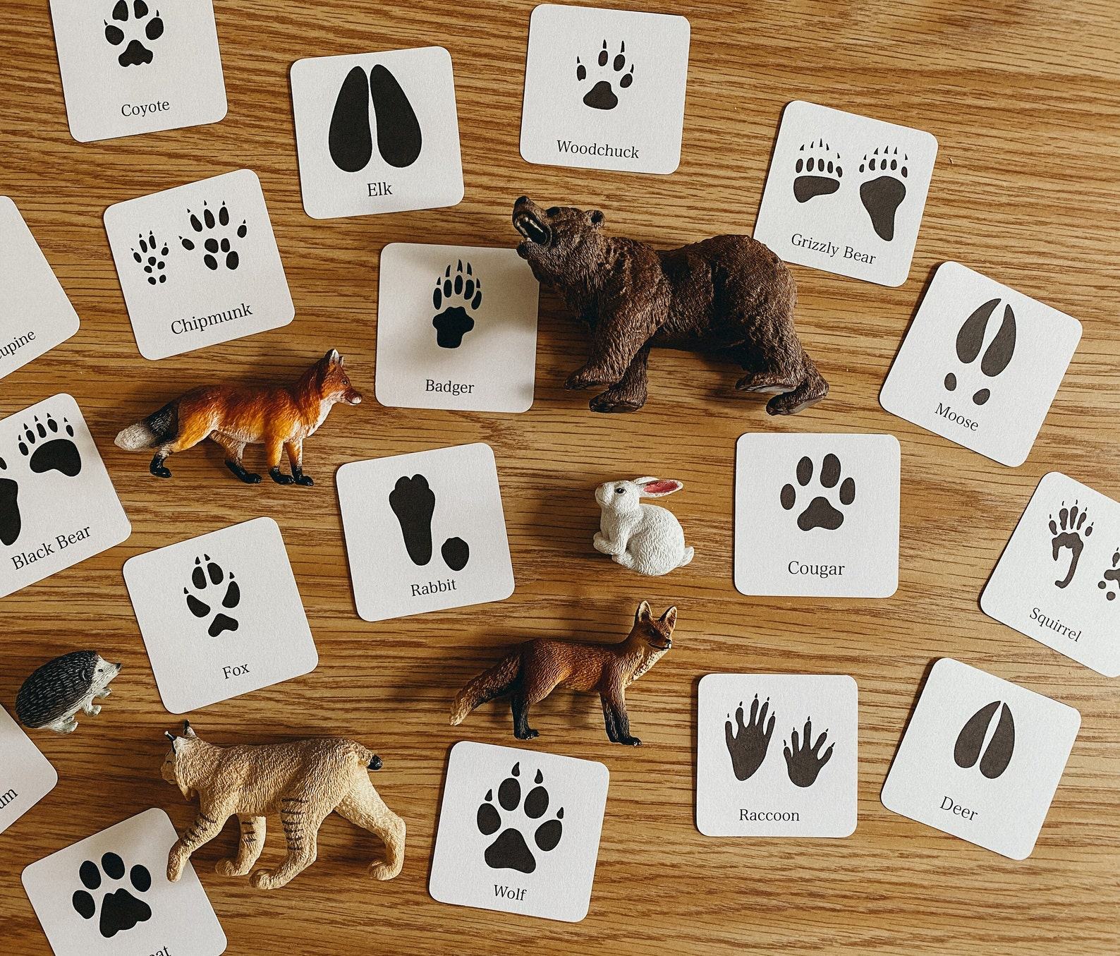 - Engage young learners with 24 vibrant flashcards featuring realistic animal tracks.