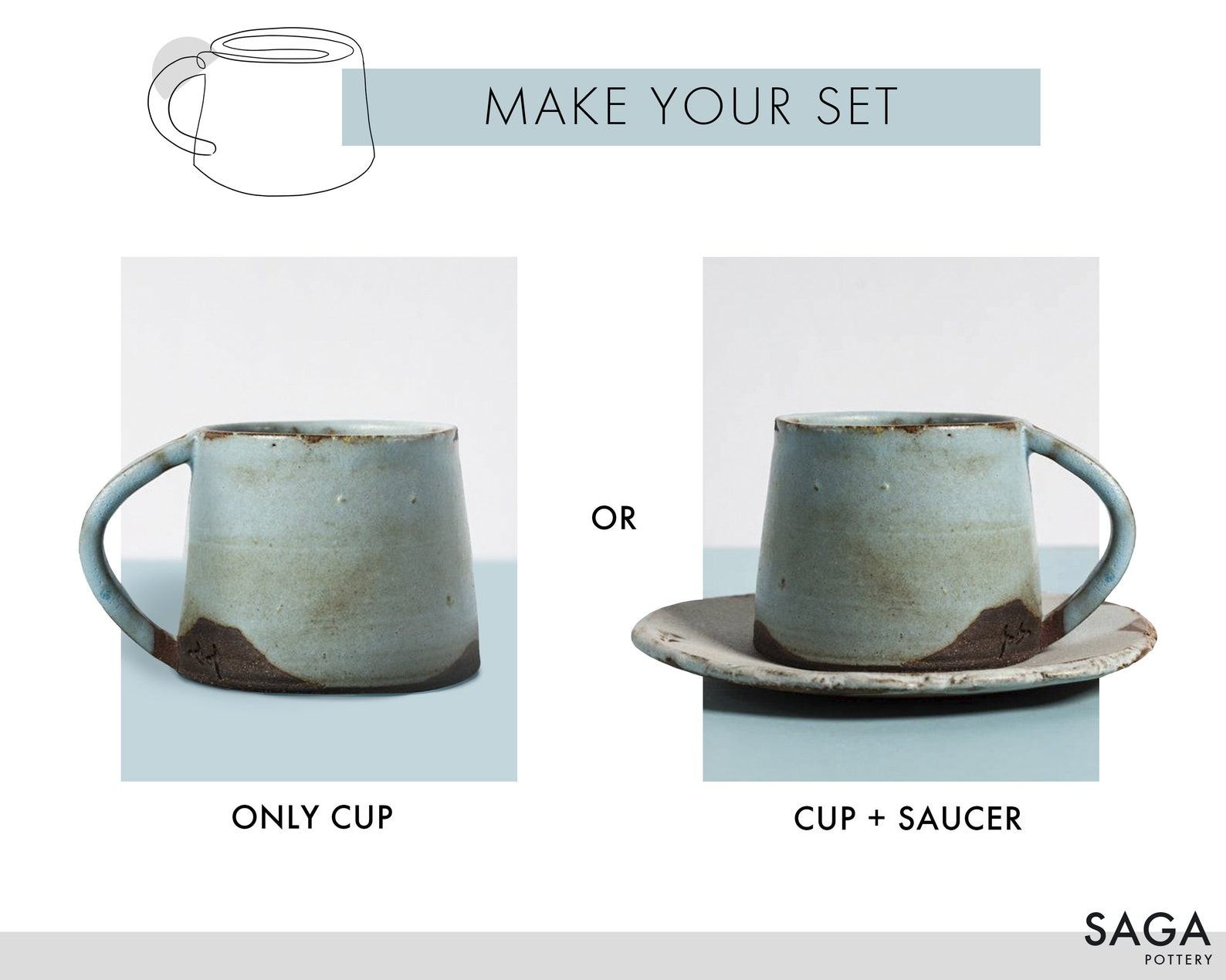 Artisan-Crafted Pottery Mug and Saucer A Scandinavian-Inspired Masterpiece for Your Farmhouse Kitchen