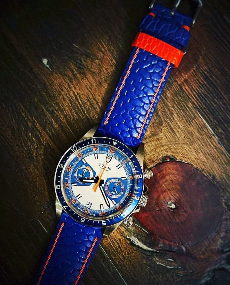 - Bespoke Navy Beaver Tail Watch Strap, Custom Curved End Watch Strap.