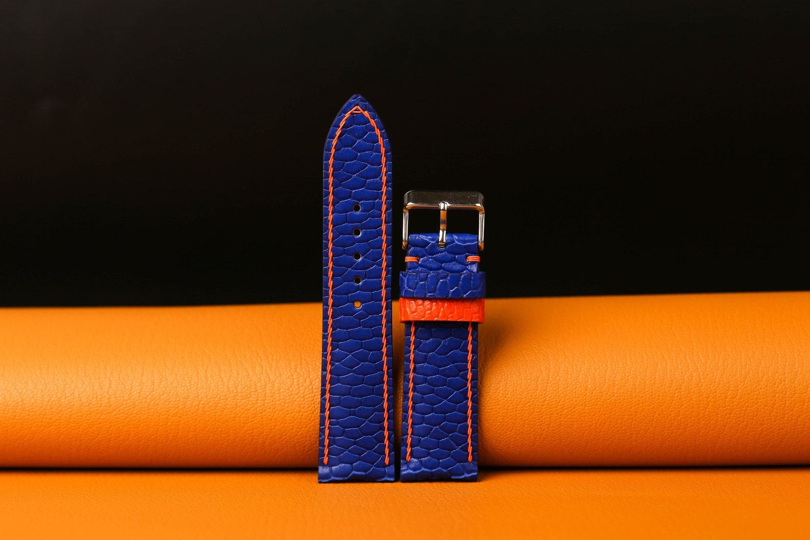 Bespoke Navy Beaver Tail Watch Strap Elevate Your Timepiece with Custom Elegance