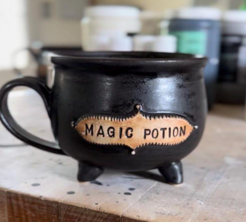 - Unleash your inner sorceress with this enchanting 18oz cauldron mug, ideal for brewing magical potions and elixirs.