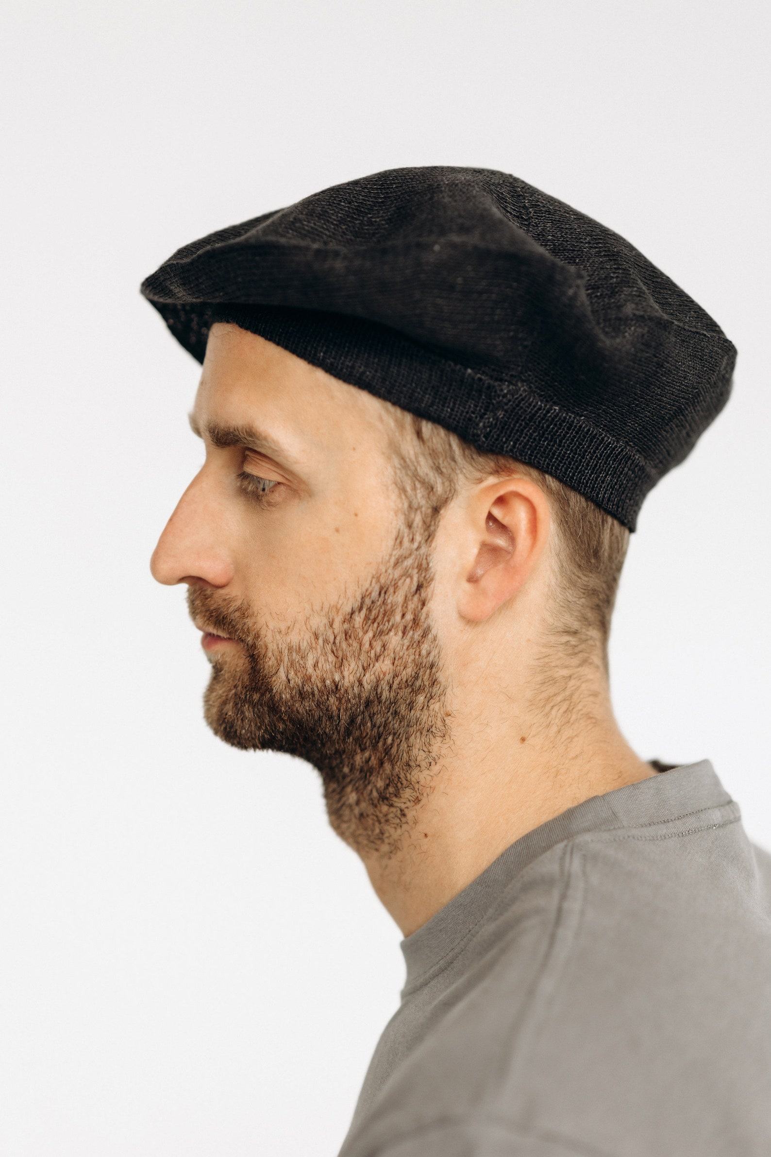 - Premium black knitted beret hat for men, crafted from natural yarns for breathability and comfort.