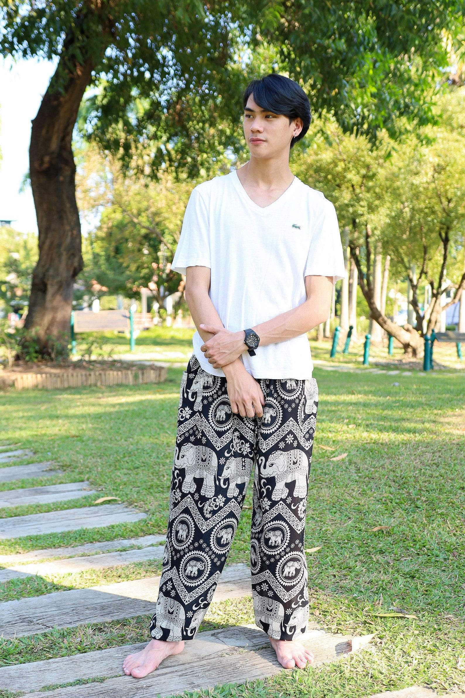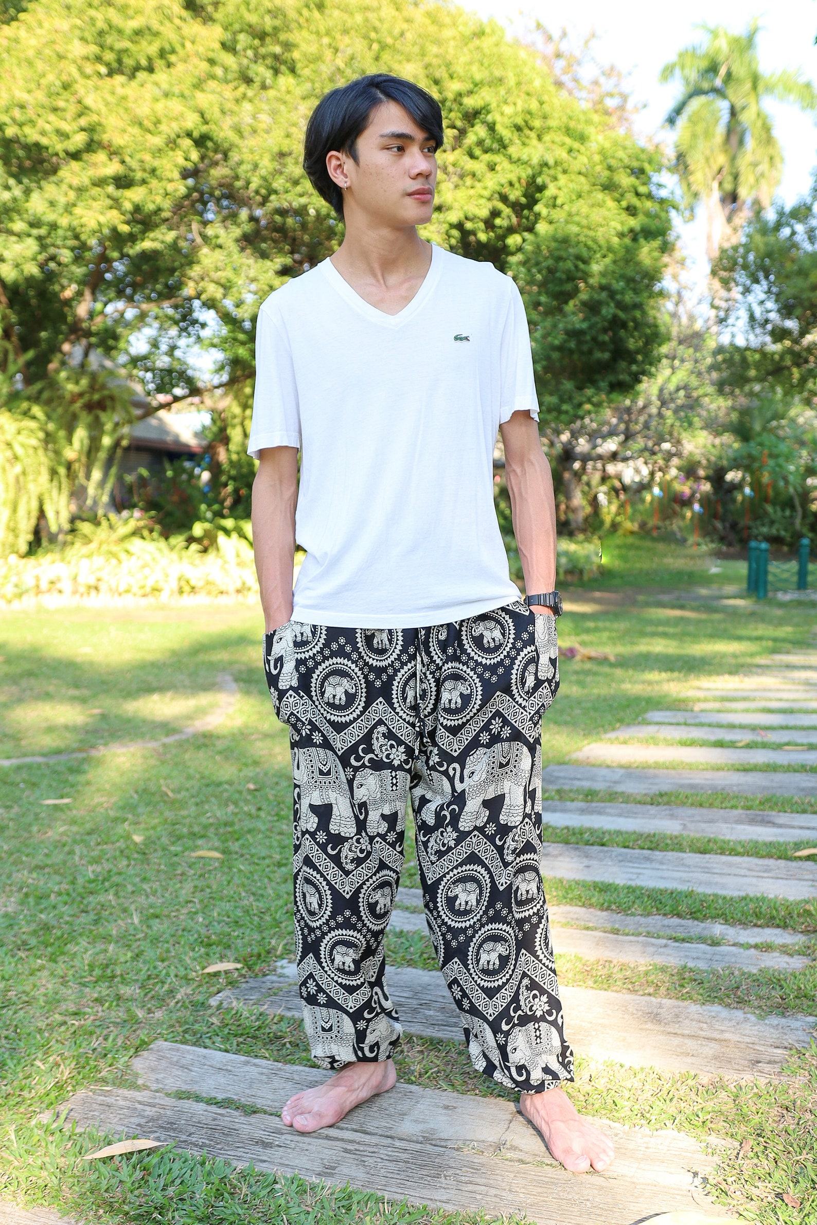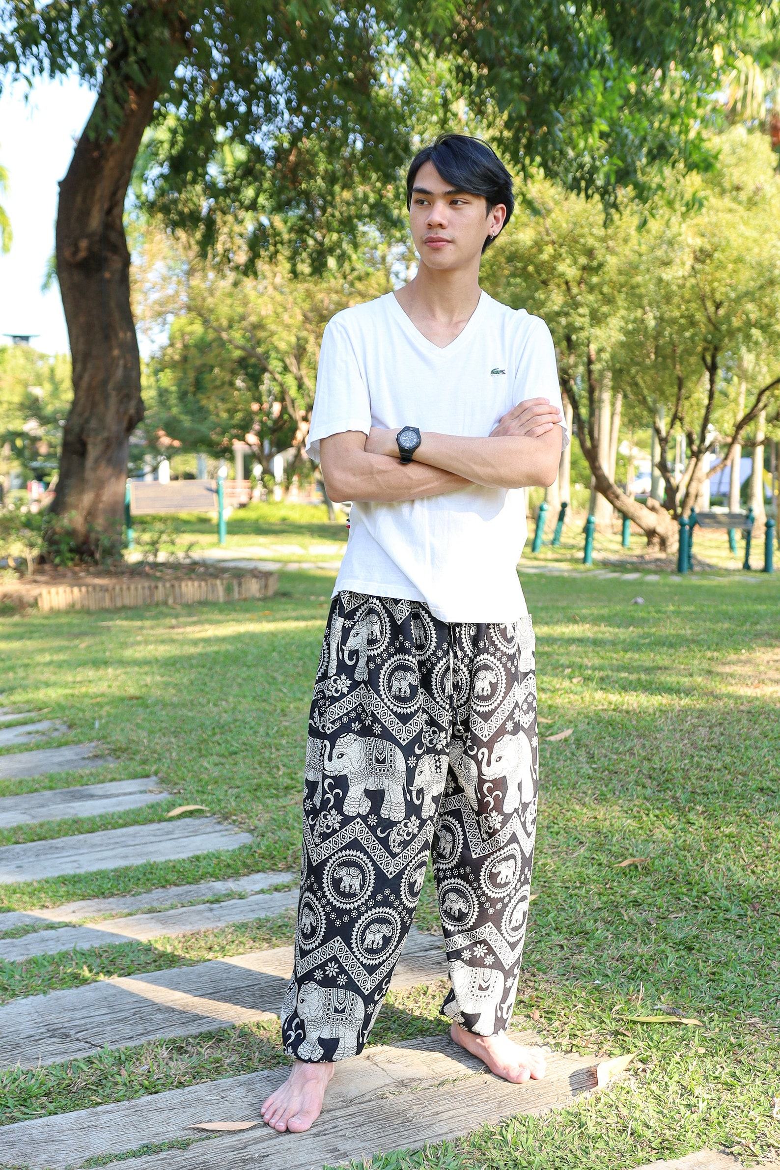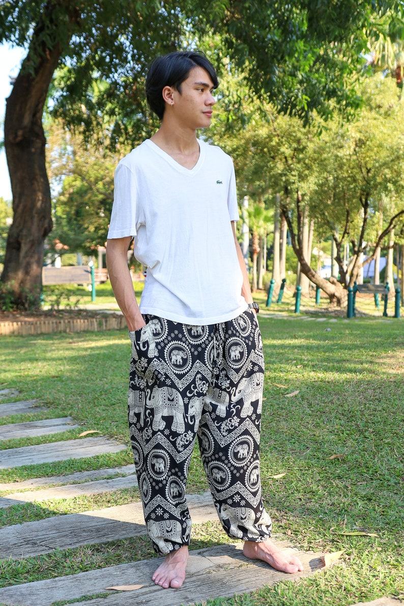 Black Elephant Pants Flowy Harem Pants for Men – Bohemian Comfort for Yoga, Dance, and Festivals