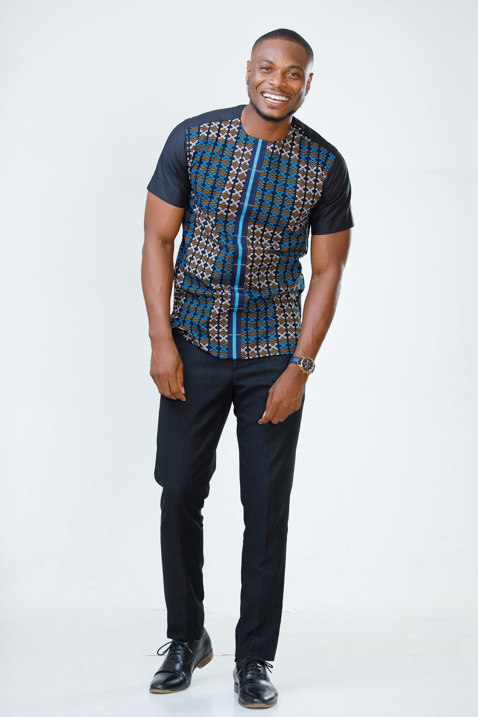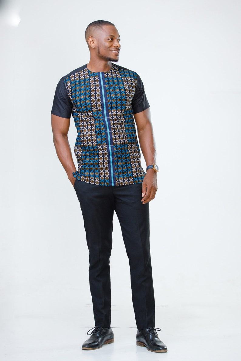 Black Kente Men’s African Print Cotton Easy-Wear Ankara Shirt by Zedi Embrace Cultural Elegance
