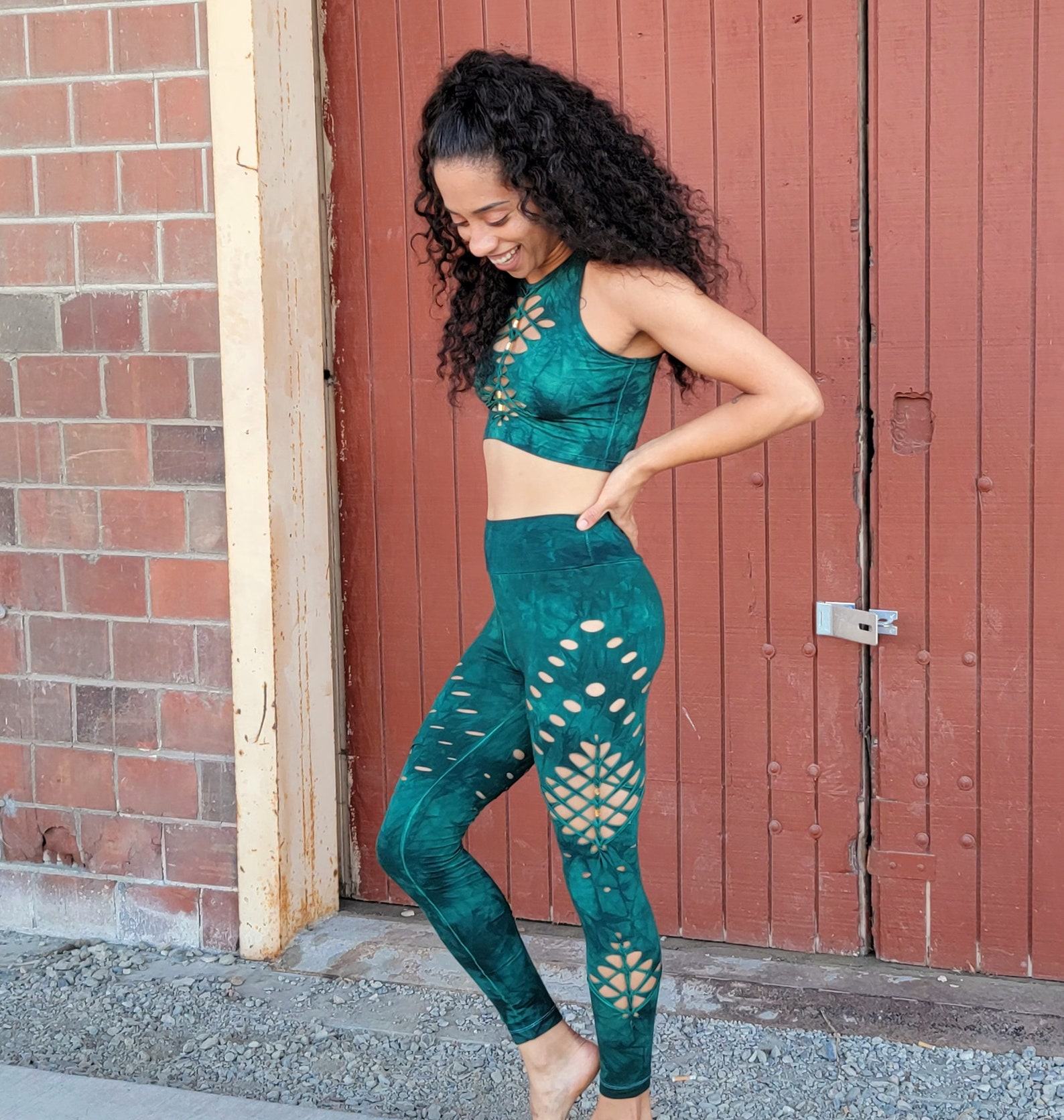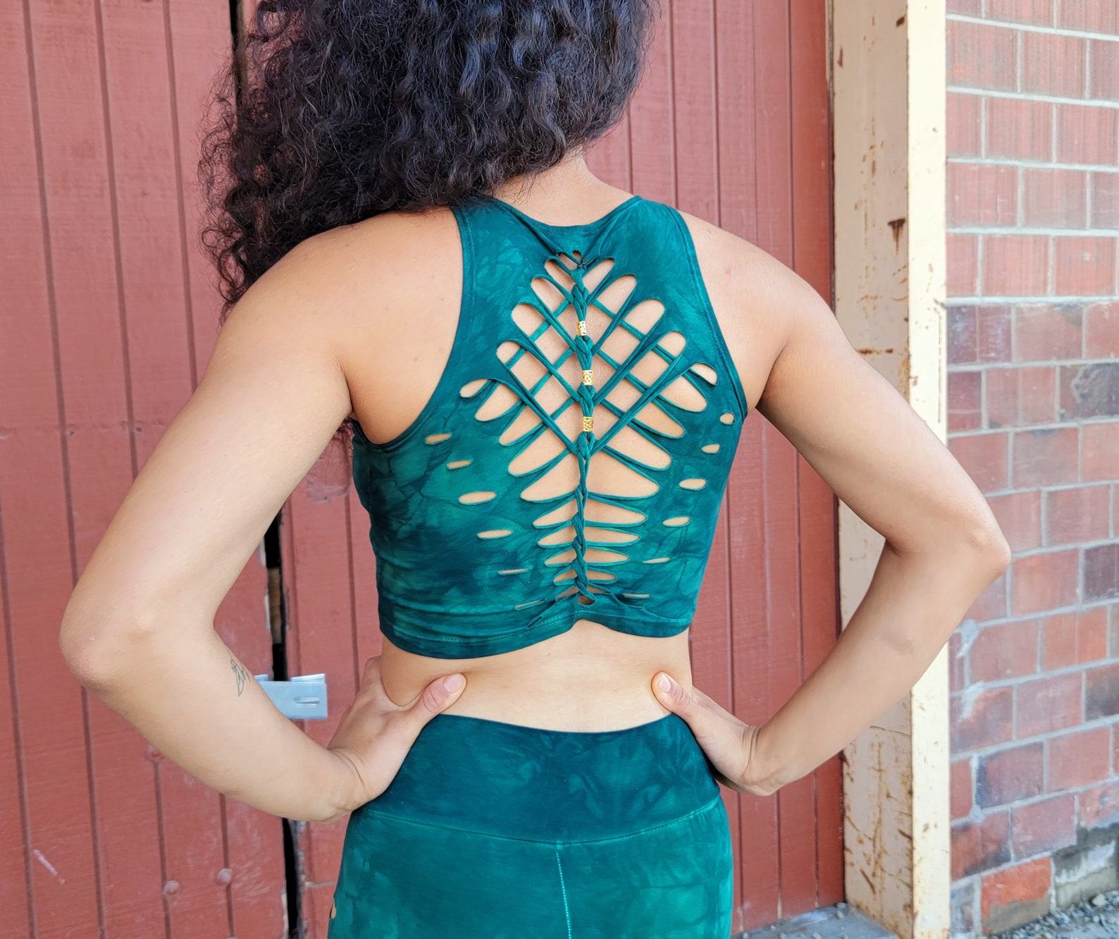 Blue Green Crop Top Hand Dyed Yoga Slit Weave Fire Hula Hoop Elevate Your Flow with Vibrant Style