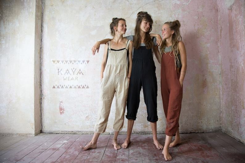Bohemian Handmade Dungarees Jumpsuit A Symphony of Colors (Black, Rust, Red, Curry, Blue, Gray)