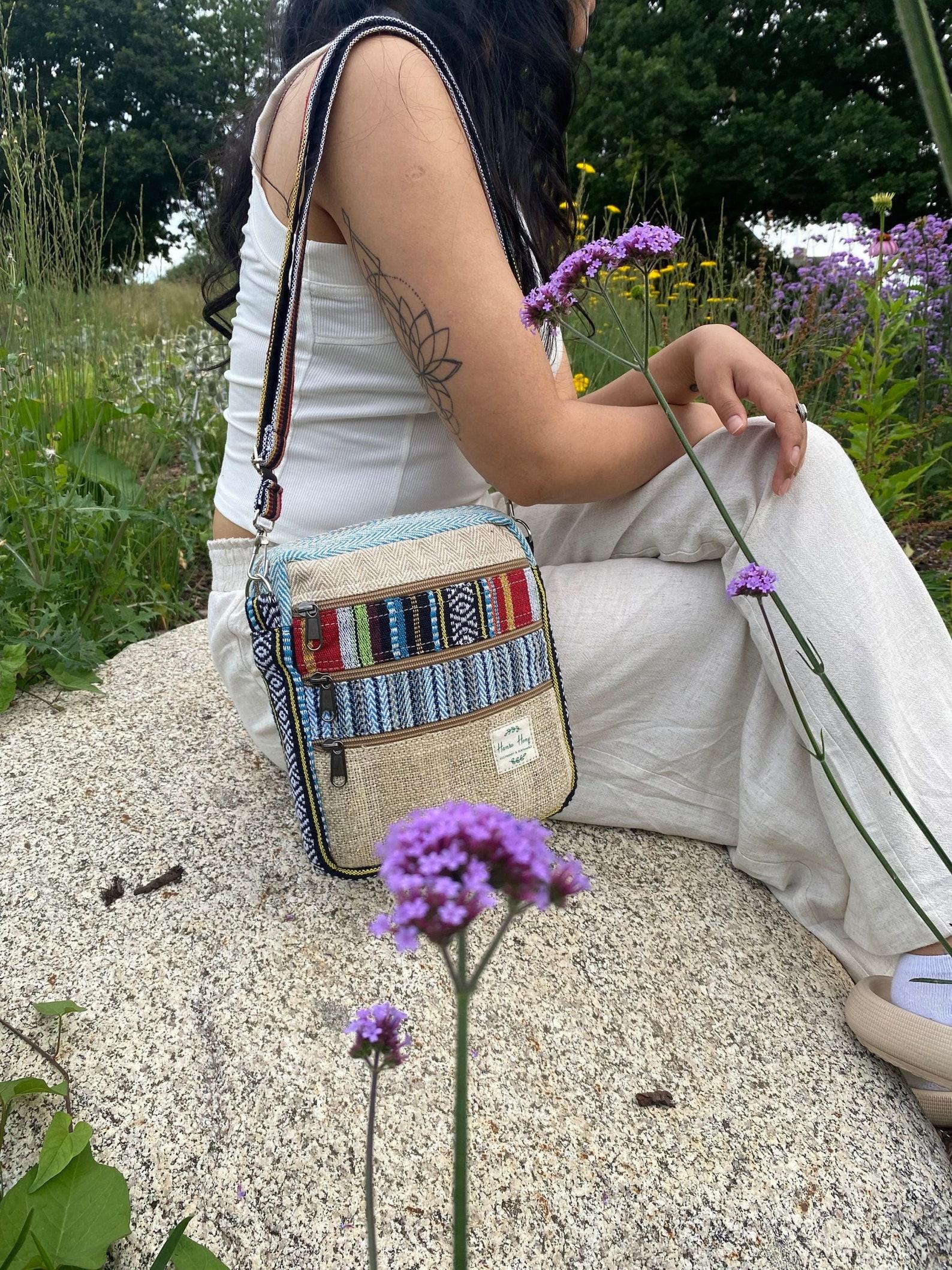Boho Hemp Mini Bag Eco-Friendly Crossbody Purse for Festivals and Everyday Style
