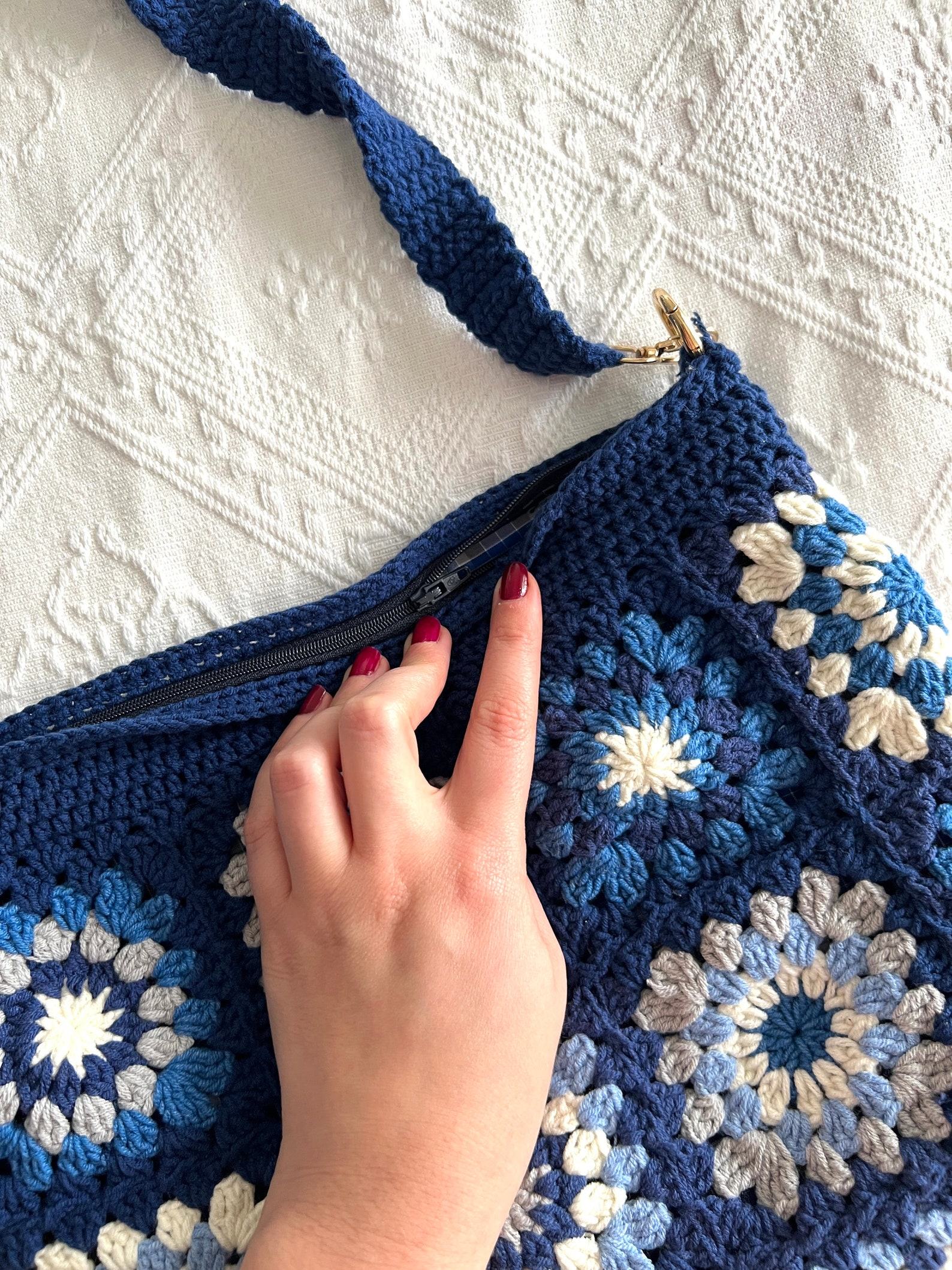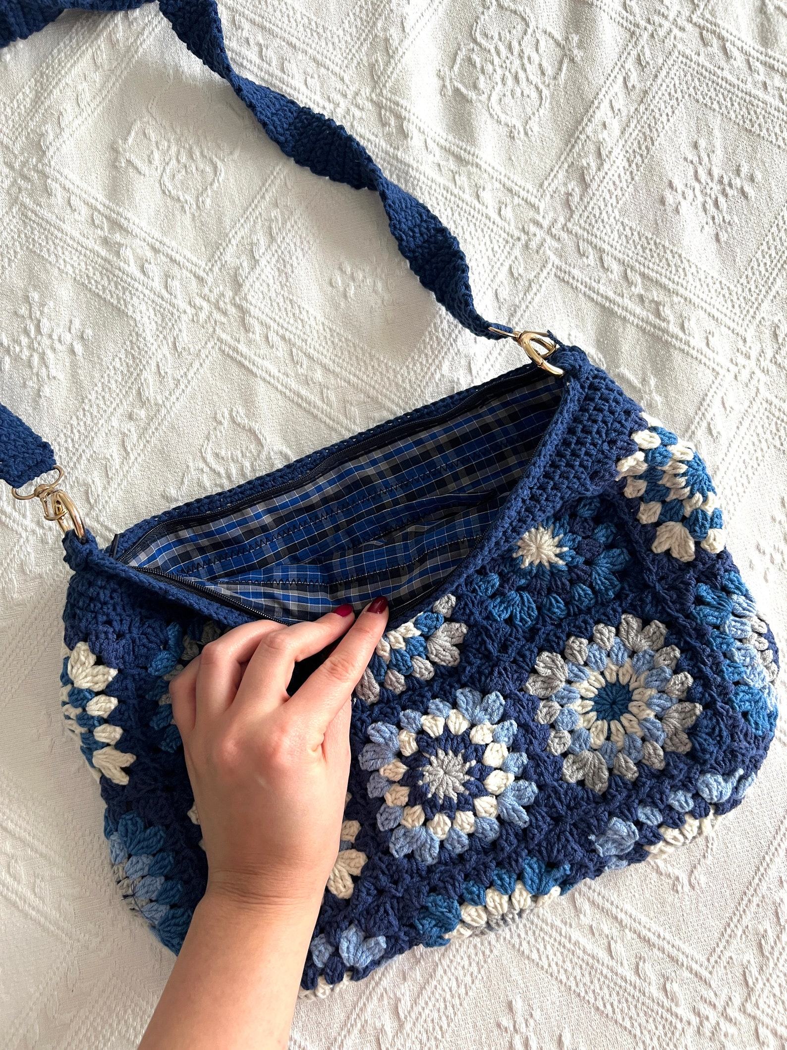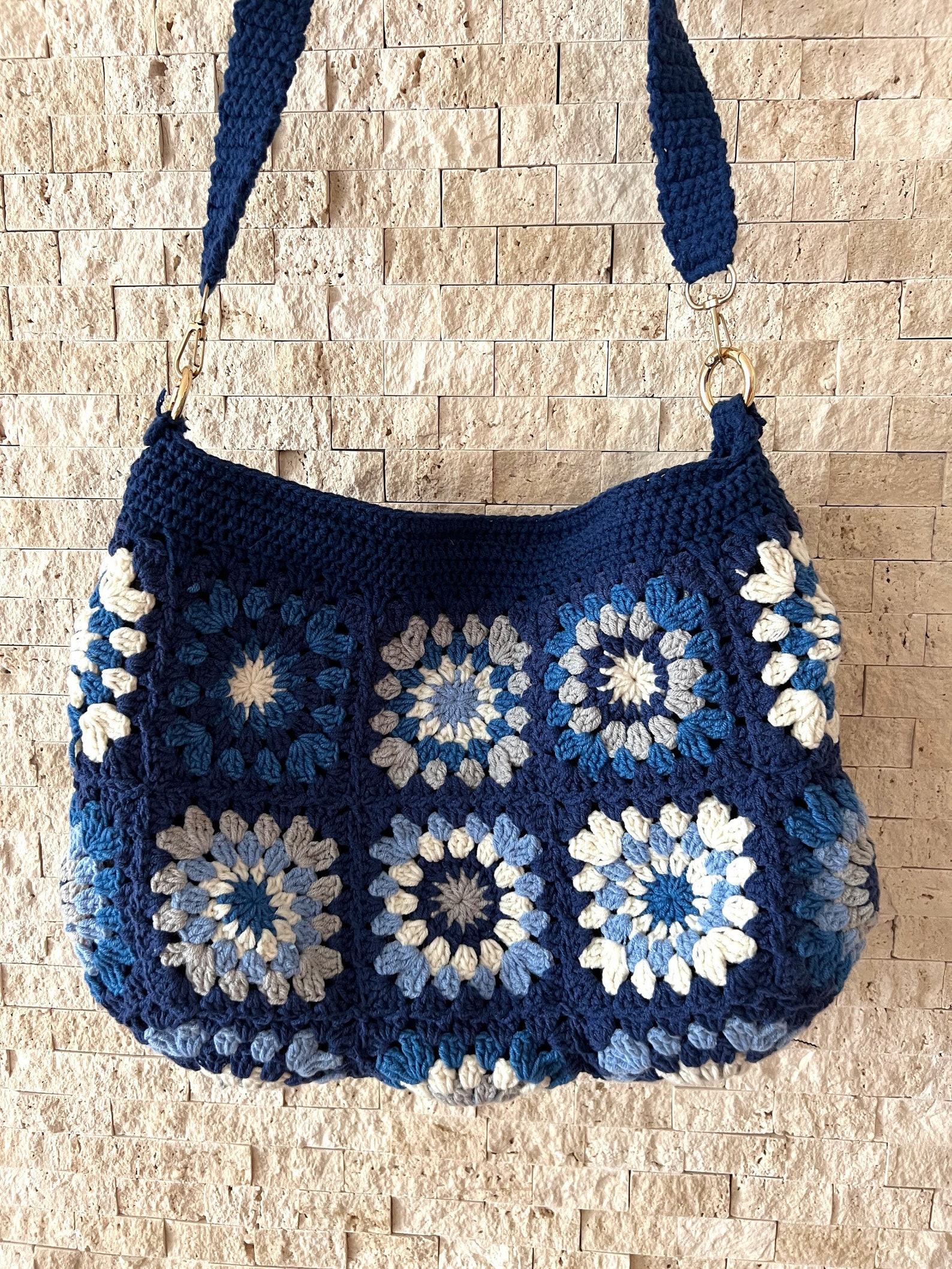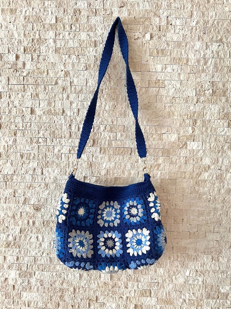Captivating Blue Granny Square Crochet Bag A Timeless Knitted Crossbody for Everyday Style