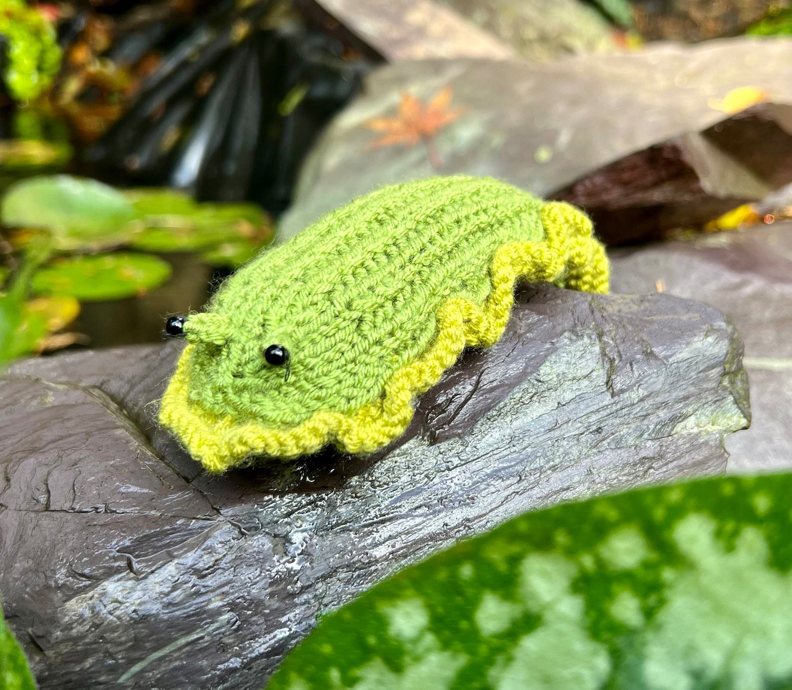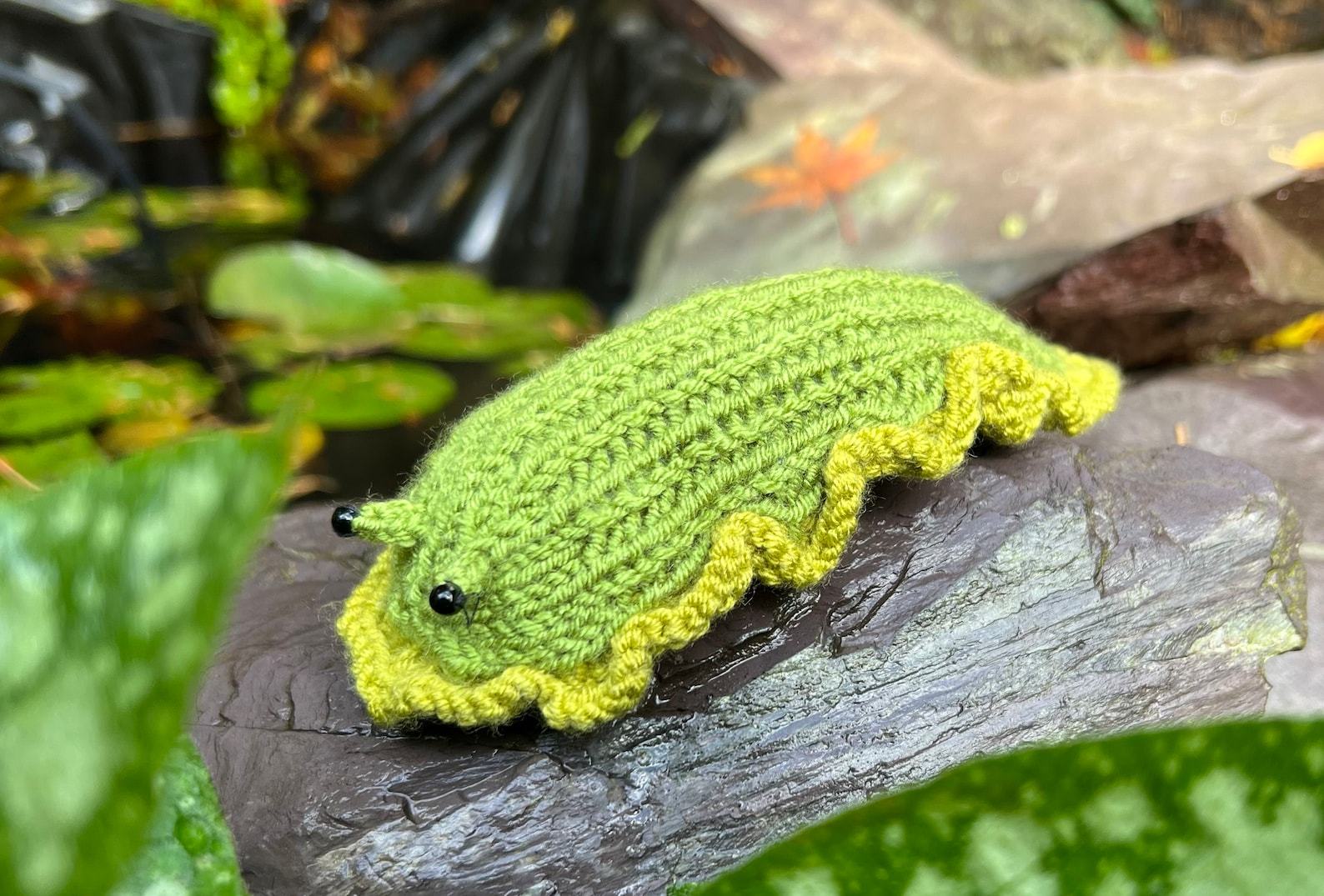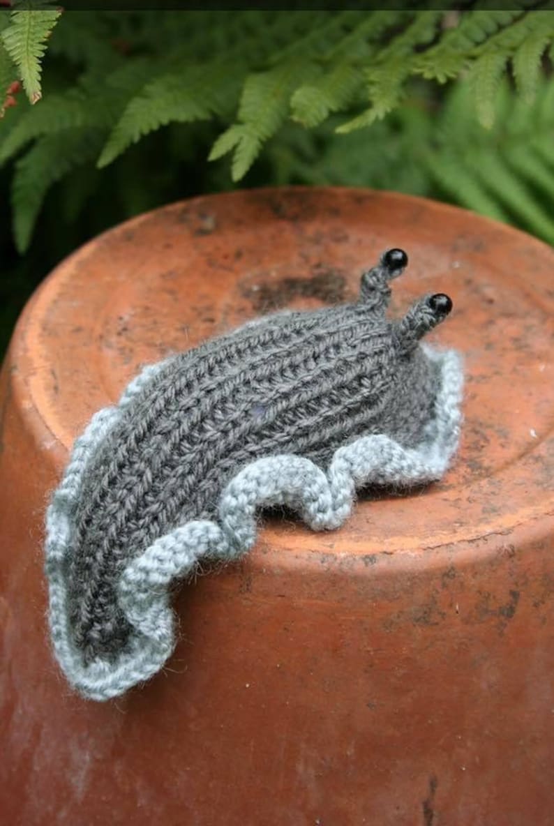 - Delightful knitted slug, a charming item for garden enthusiasts.