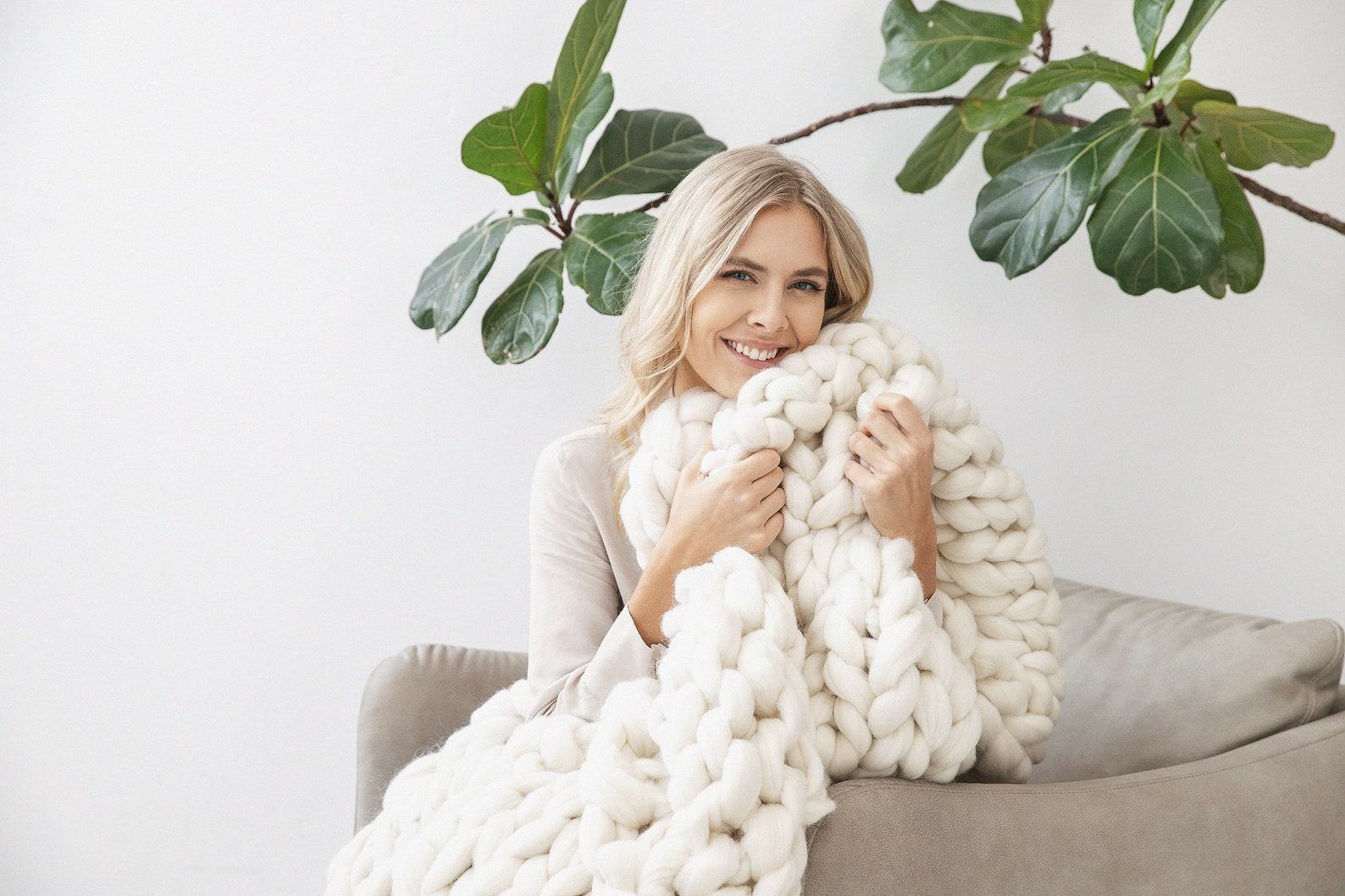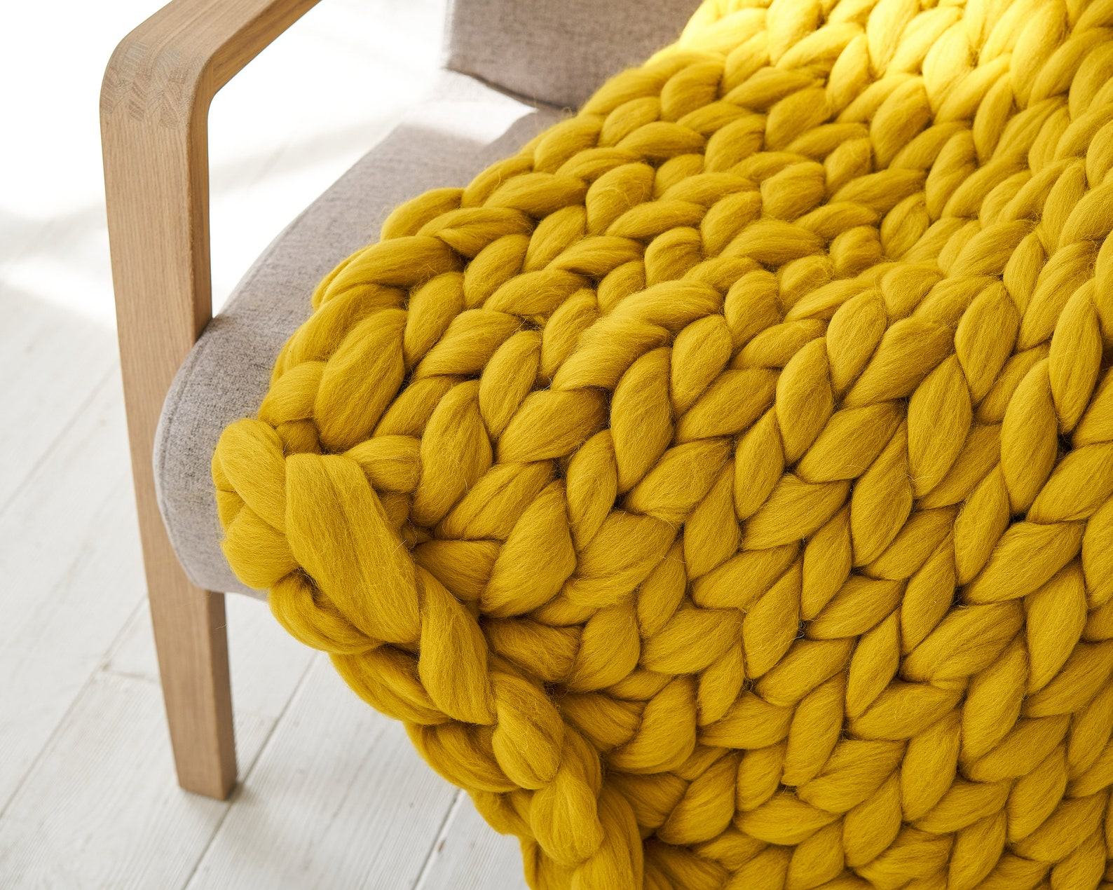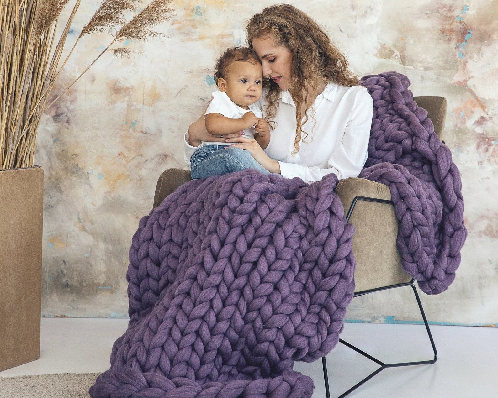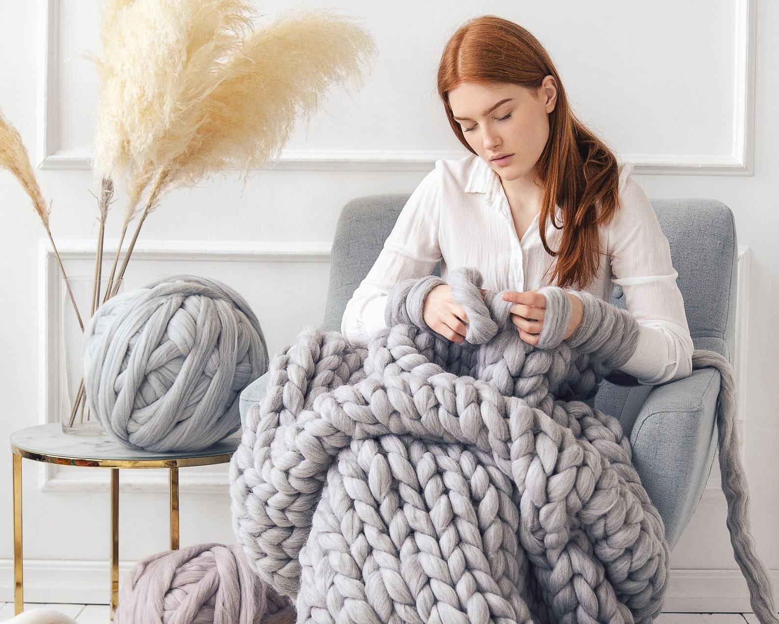 - Indulge in the ultimate comfort with our luxurious chunky knit blanket, meticulously crafted from premium merino wool.