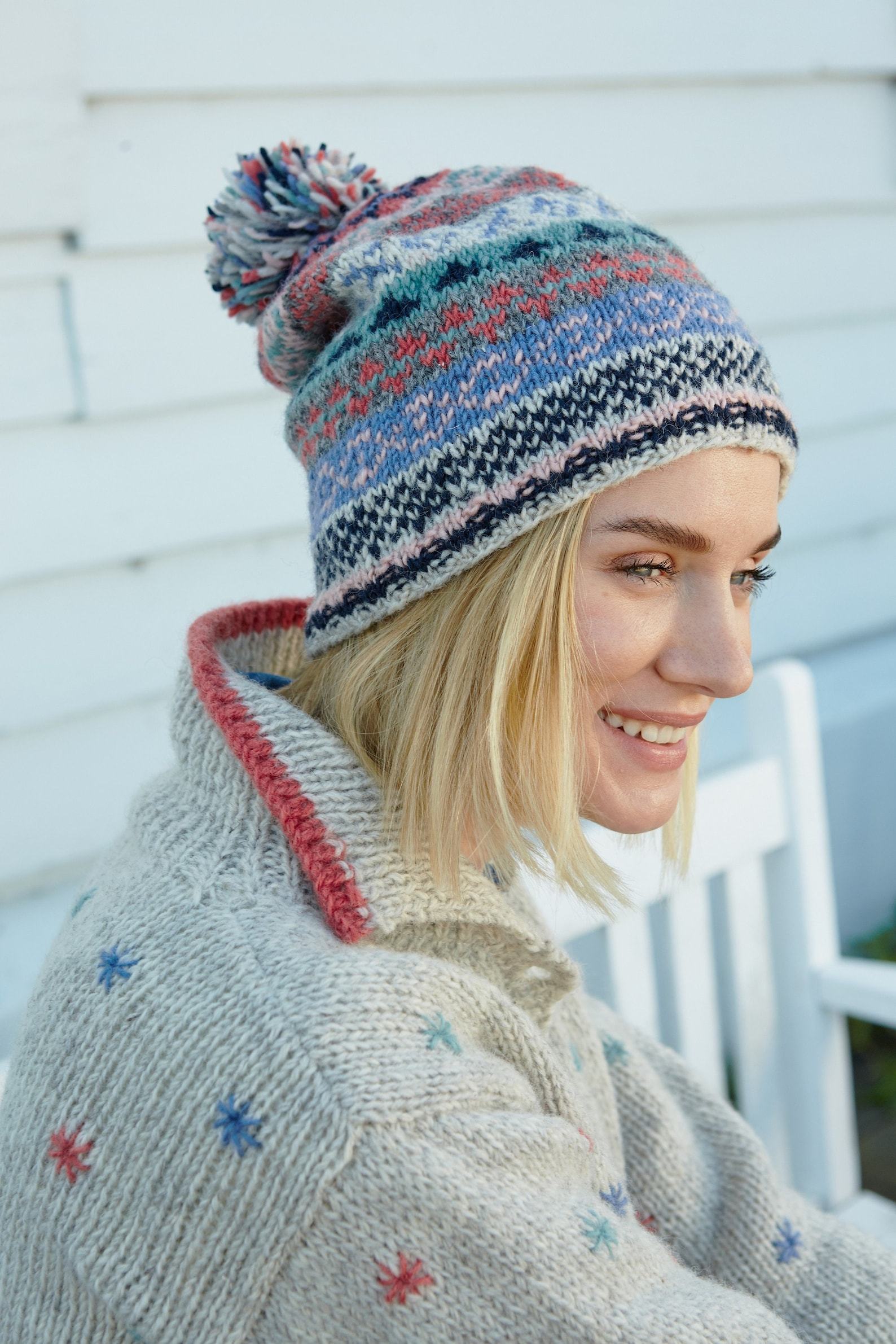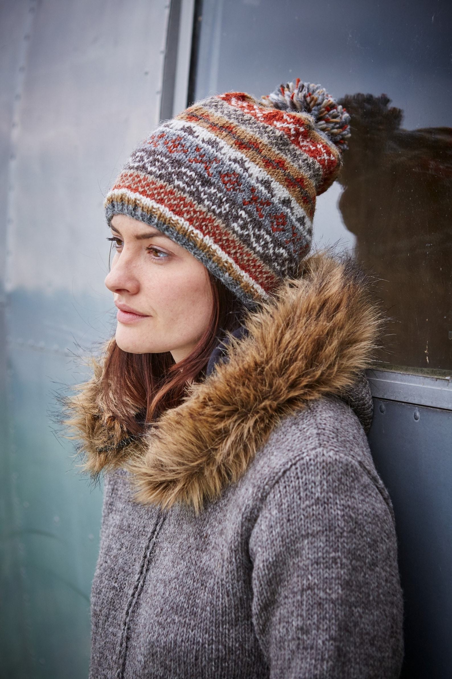 Cozy Fair Isle Winter Knit Hat Ethical Wool Beanie for Women $36.08