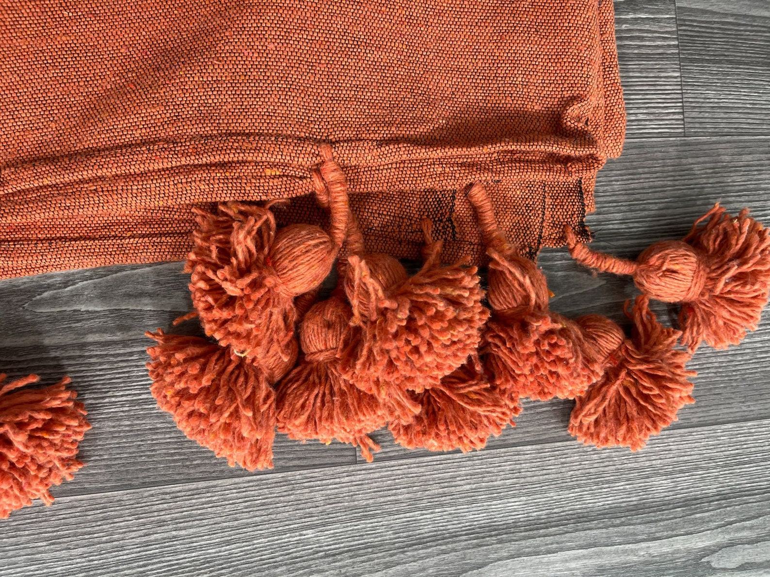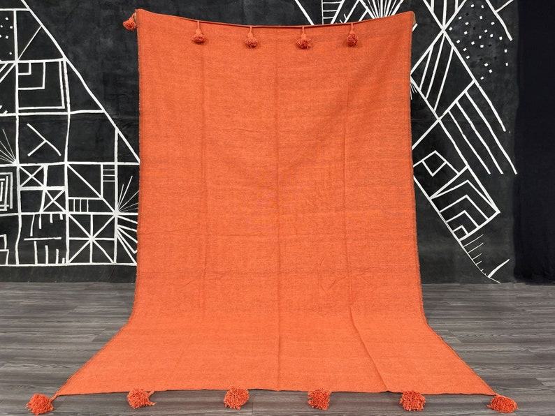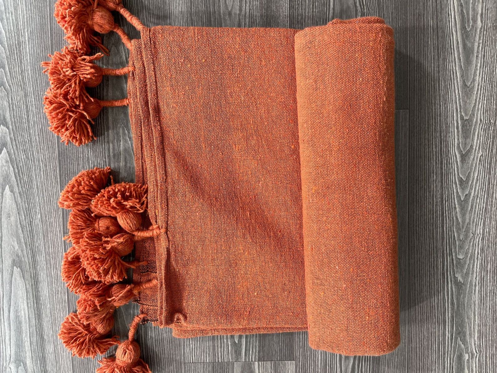 Cozy Haven Handmade Orange King Bedspread, Moroccan Cotton Throw Blanket for Queen Size Beds, Plaid Striped Large Throw, Farmhouse Decor