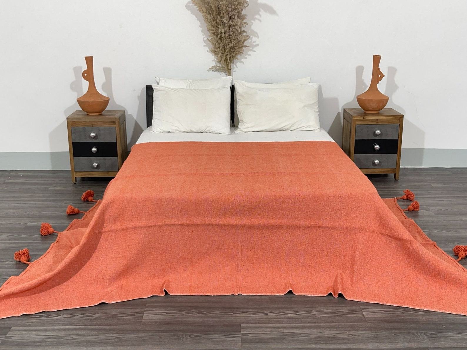 - Handmade with love, this orange king bedspread adds a touch of warmth and coziness to your bedroom.