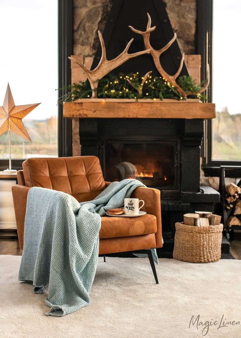 - Cozy and breathable linen throw blanket in a serene Dusty Blue hue