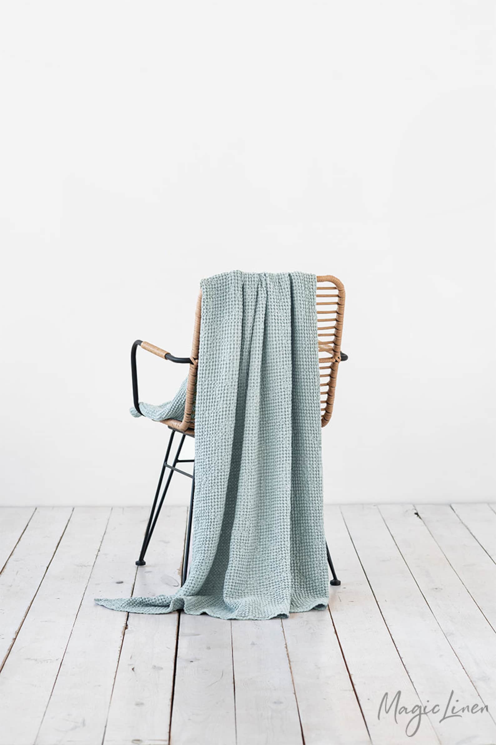 Cozy Haven Waffle-Weave Linen Throw in Serene Dusty Blue