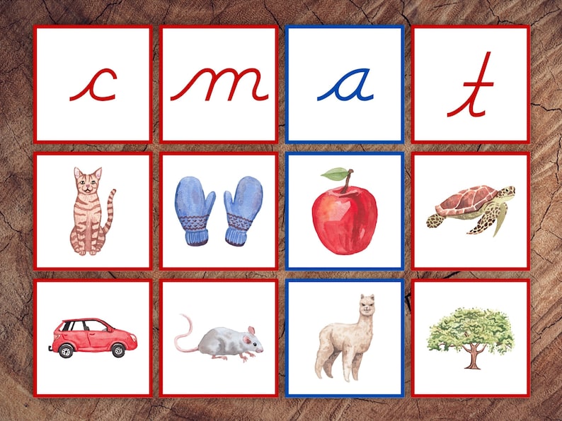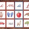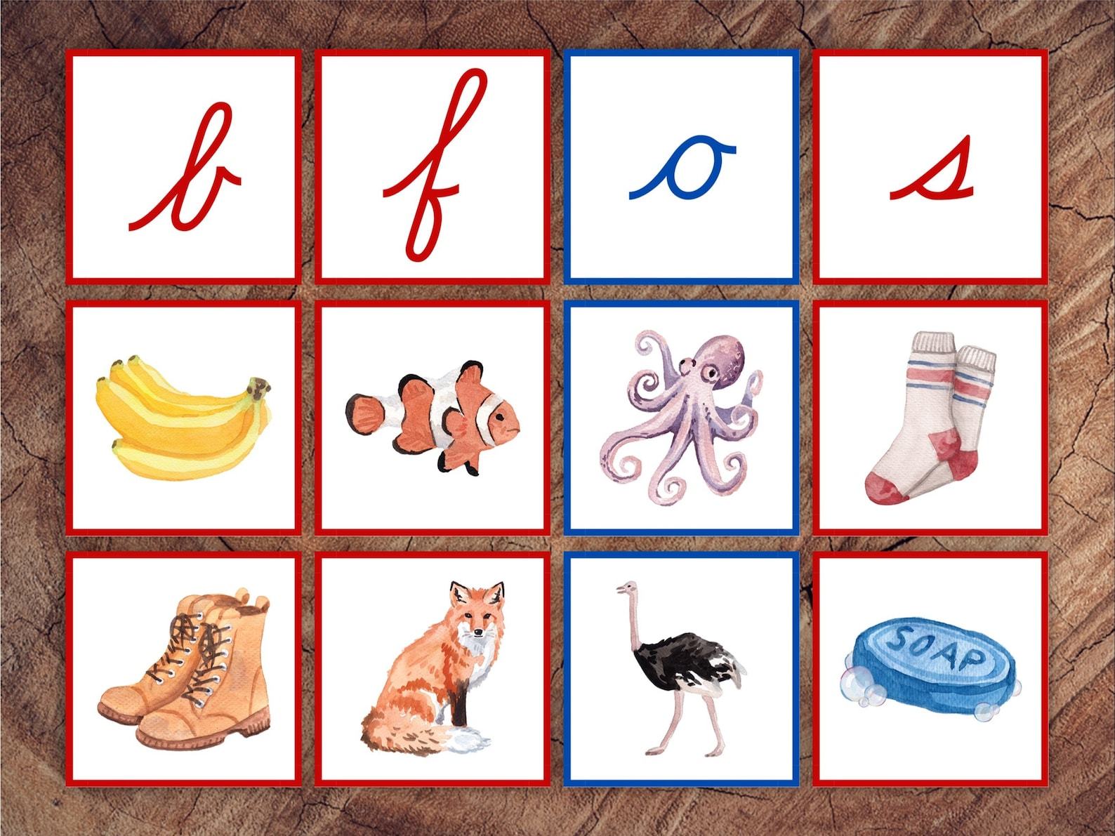 Cursive Letter Sounds Picture Sorting Cards Red Consonants, Blue Vowels