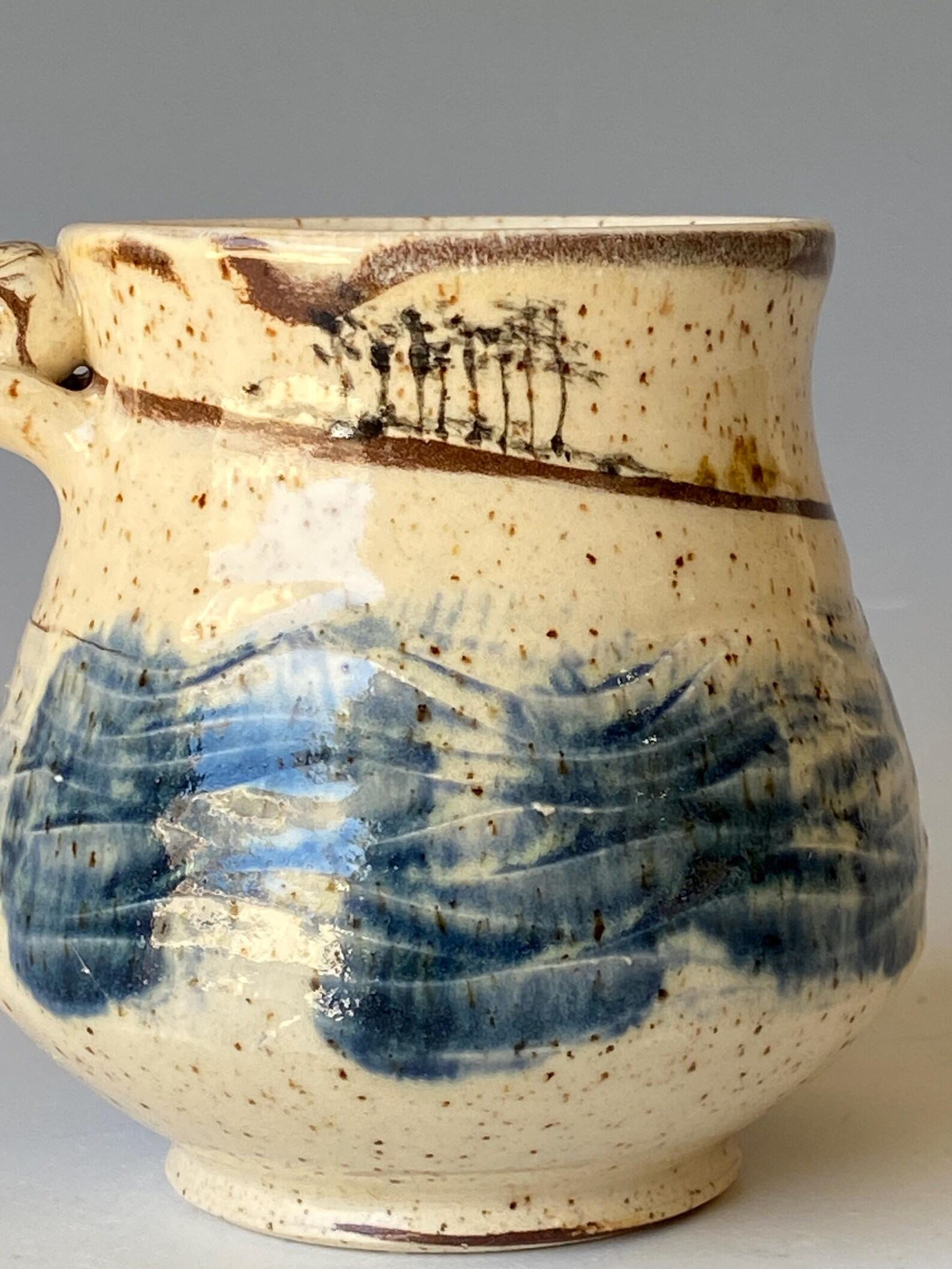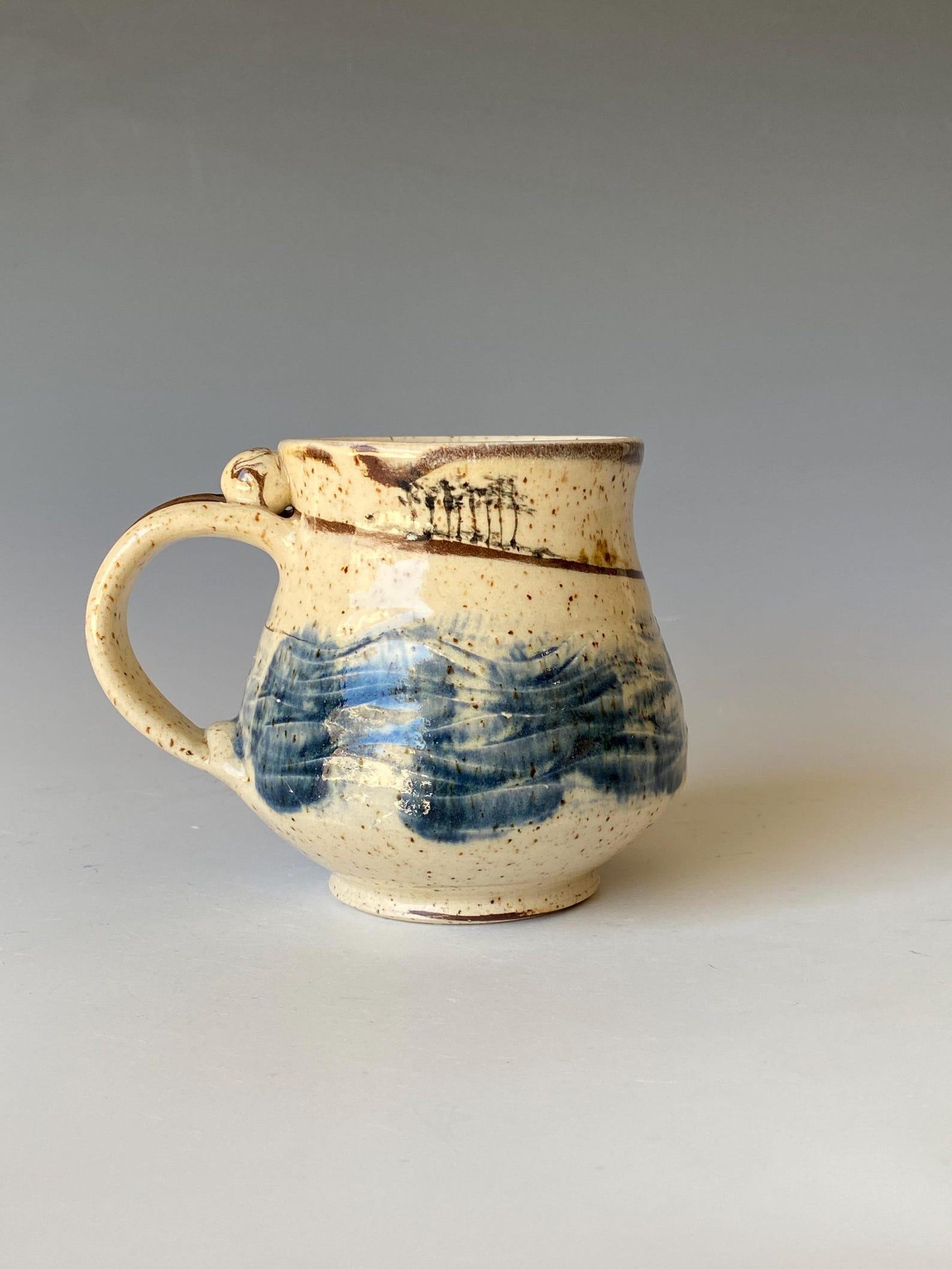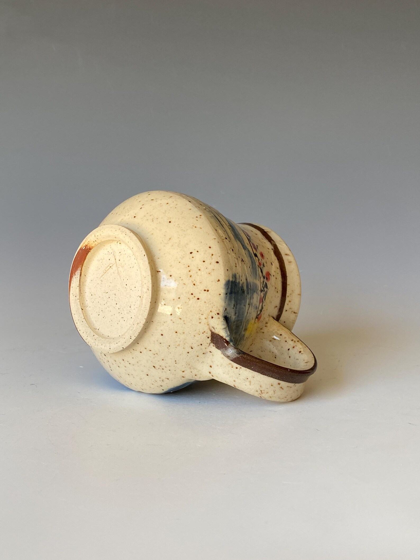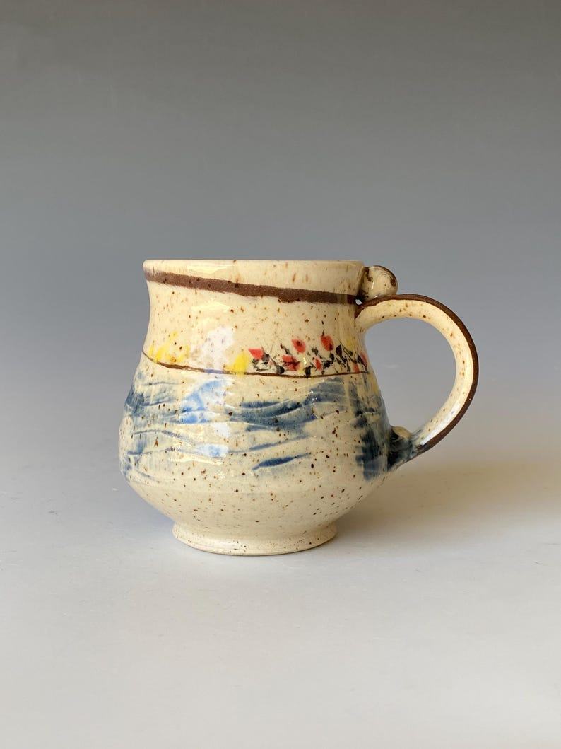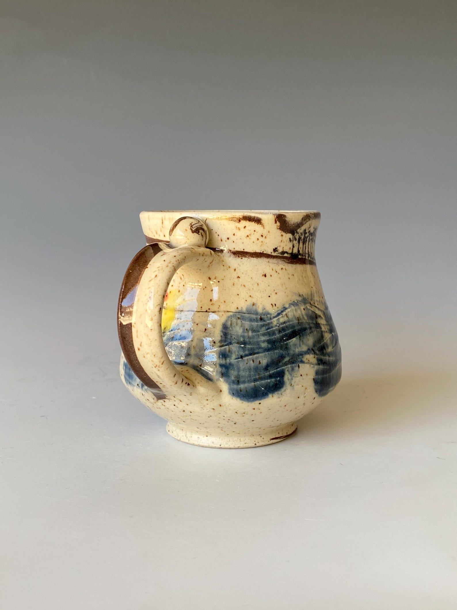 - Handcrafted ceramic mug adorned with a vibrant symphony of colors, bringing joy to your morning ritual.