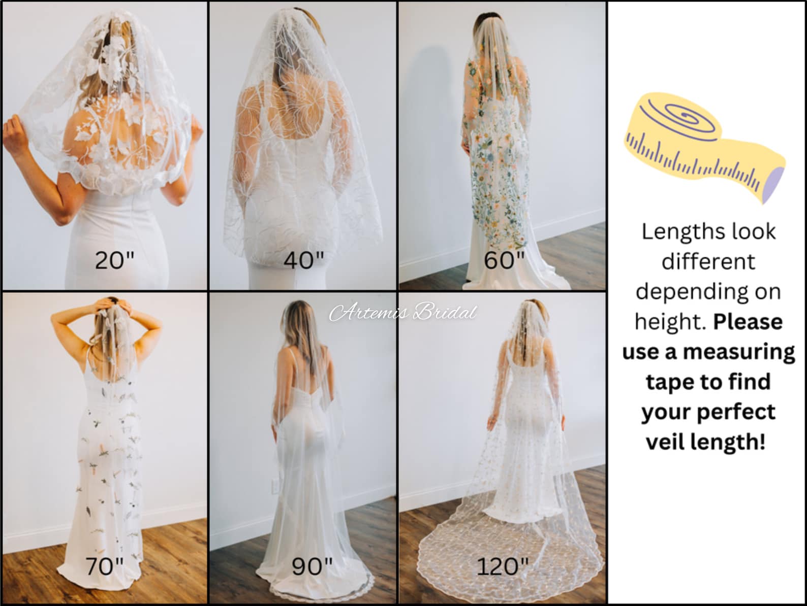 - Available in various lengths, including cathedral, chapel, and fingertip, to complement different wedding dress styles.