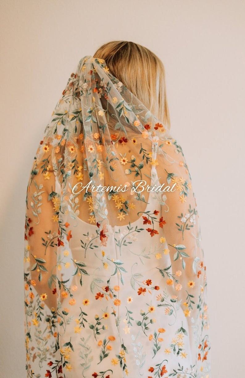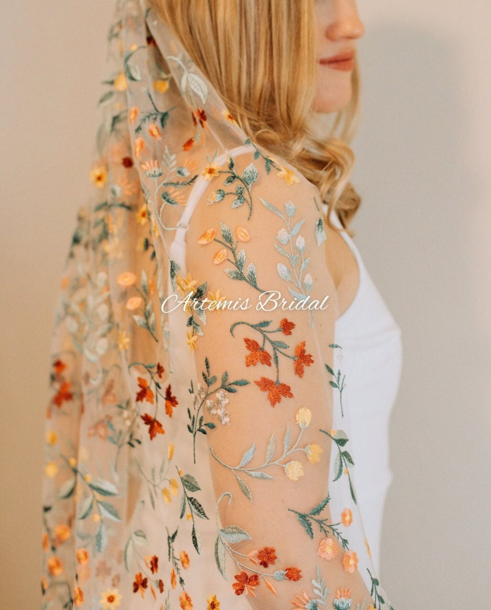 - Ella veil features intricate floral embroidery, adding a touch of whimsy to your bridal look.
