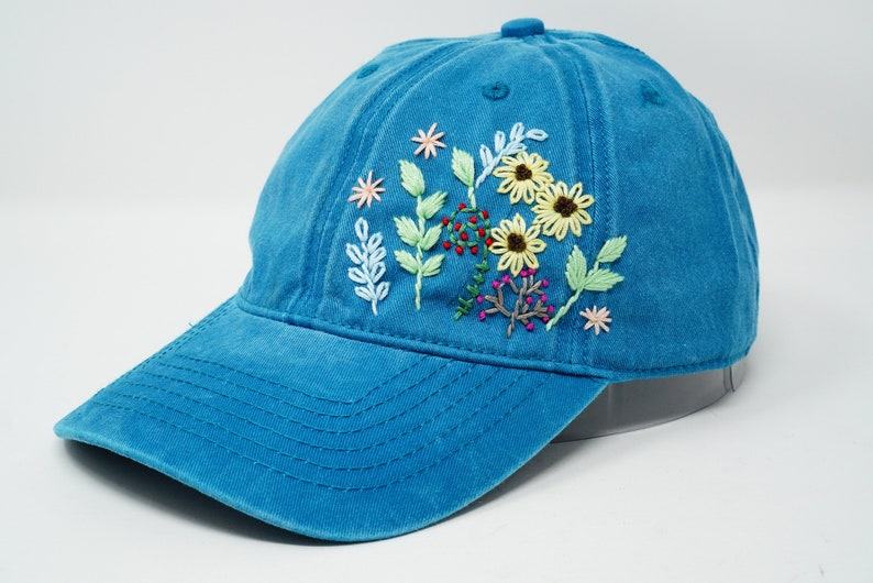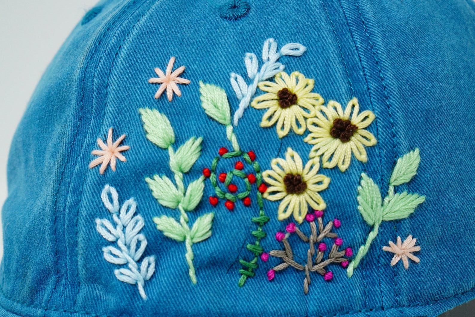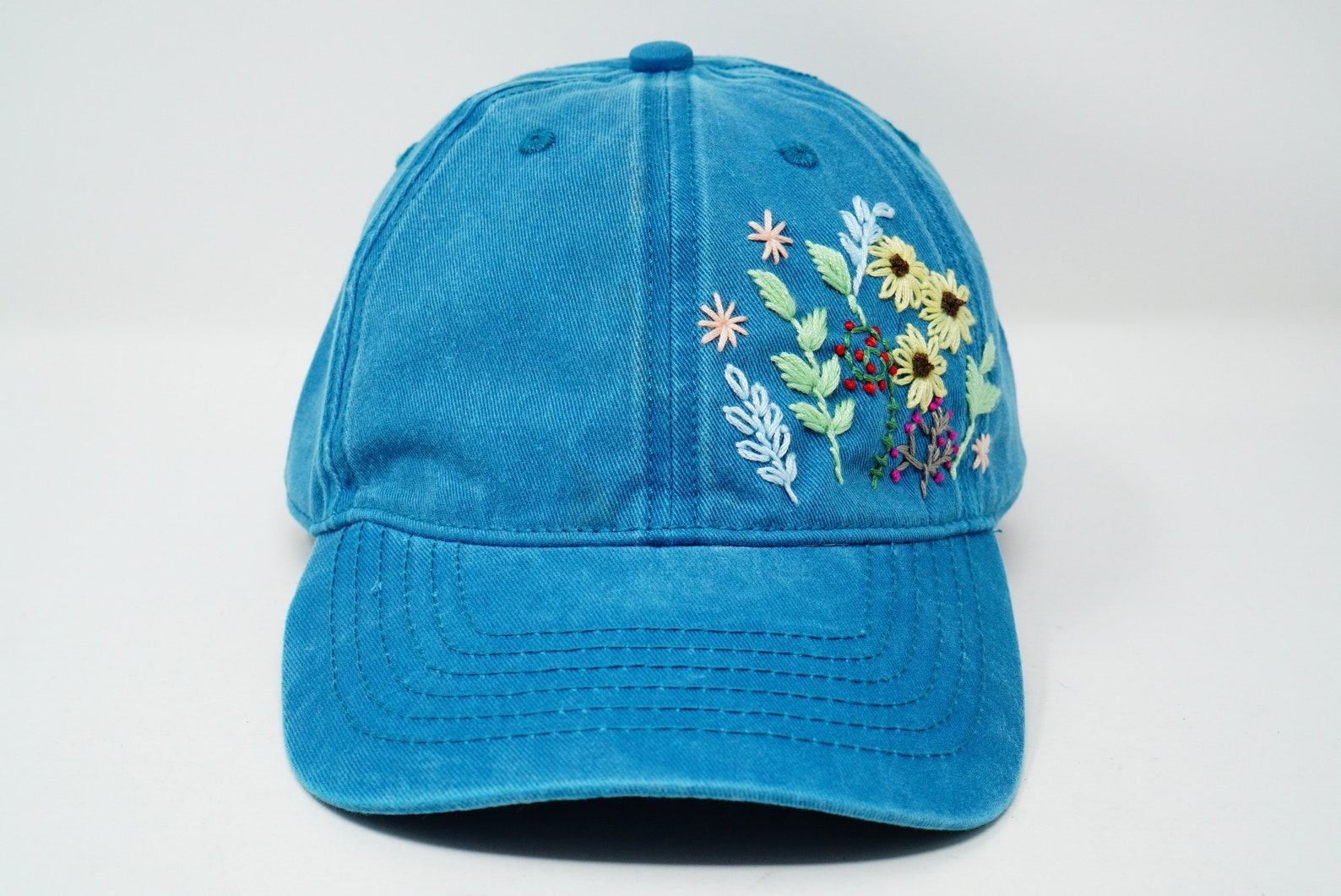 Embroidered Floral Baseball Cap Faded Blue Summer Style