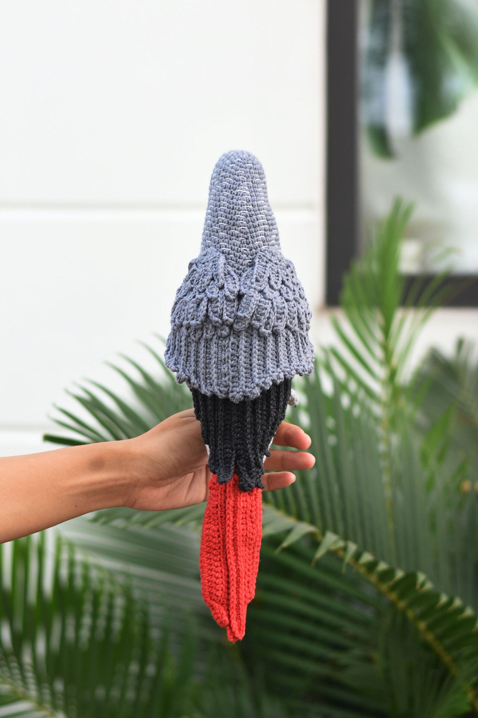 - Handmade crochet Congo African Grey Parrot stuffed toy