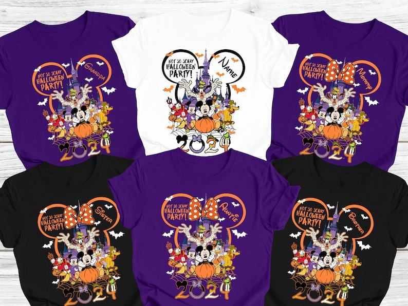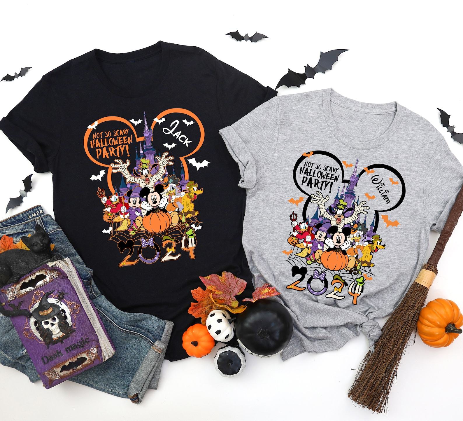 - Featuring beloved Disney characters in festive Halloween costumes, these shirts will bring a touch of spooktacular fun to your Not So Scary Halloween experience.