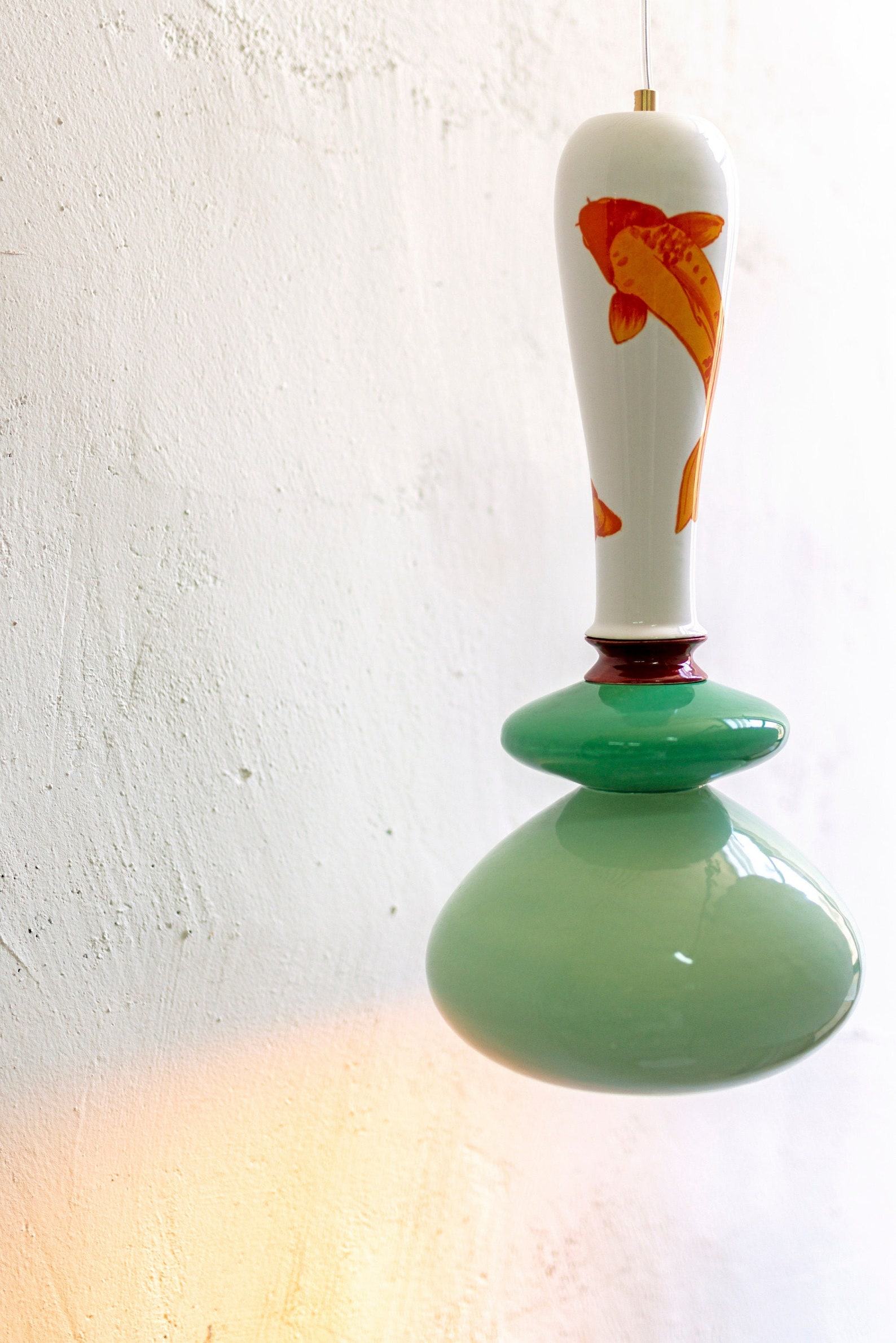- Captivating pendant lamp adorned with lifelike green leaves, bringing a touch of nature indoors