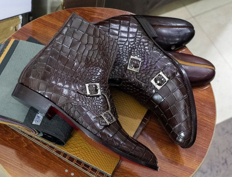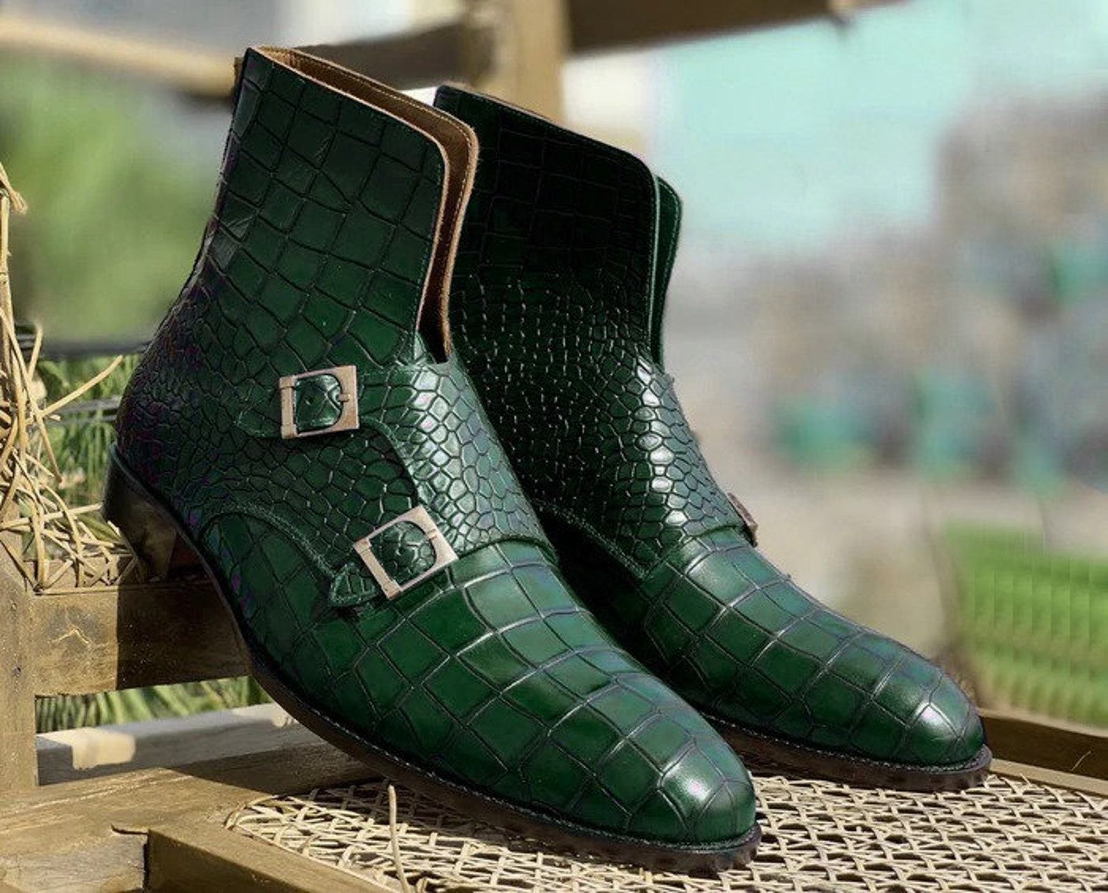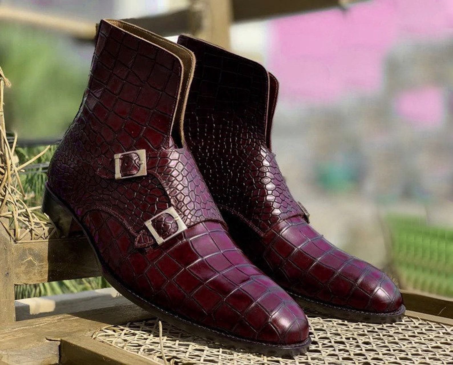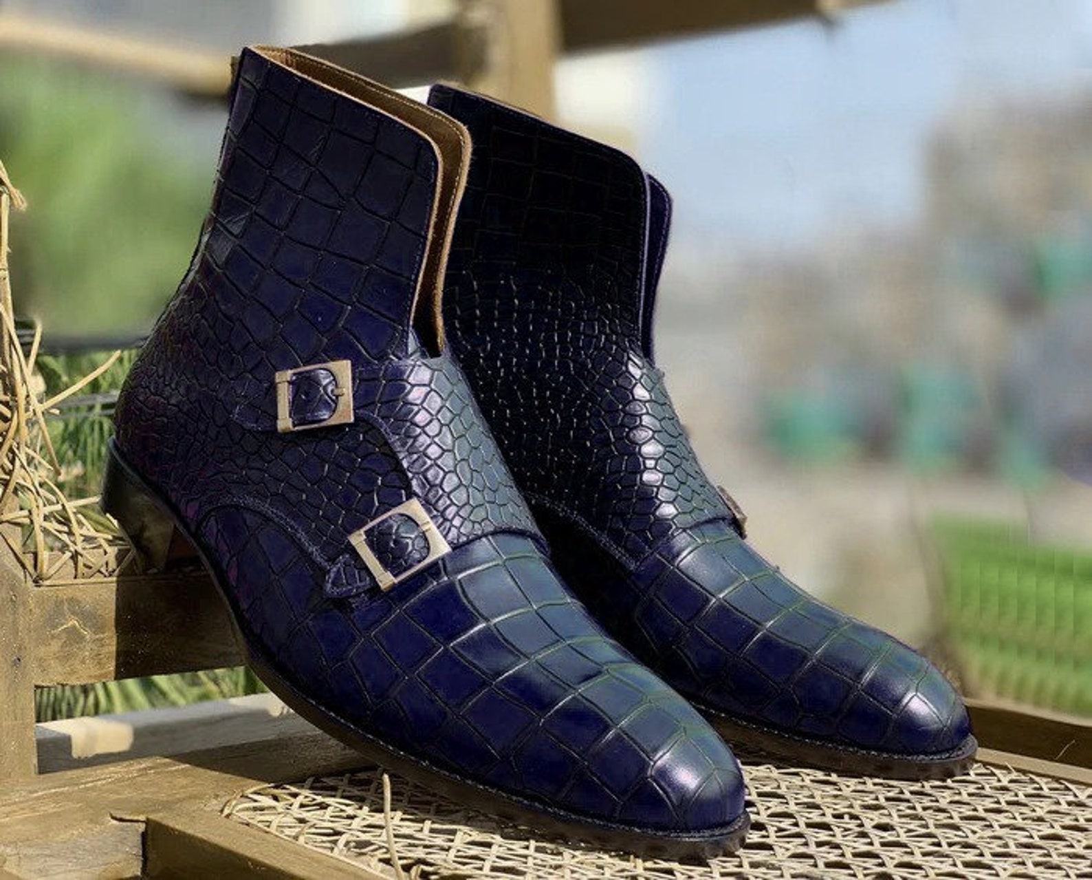 Exotic Alligator Texture Double Monk Boots – Handmade Goodyear Welt Chukka Boots