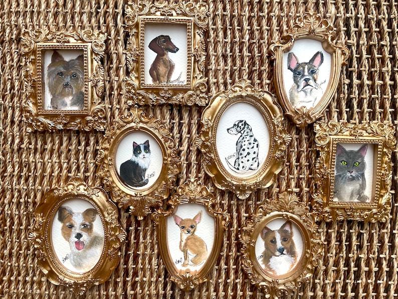 - Handcrafted miniature paintings capturing the unique personality of your beloved pets