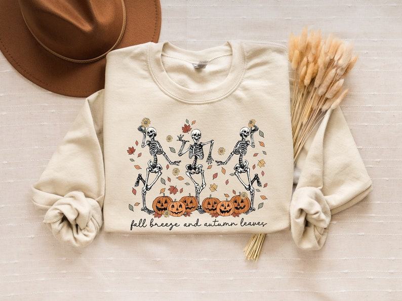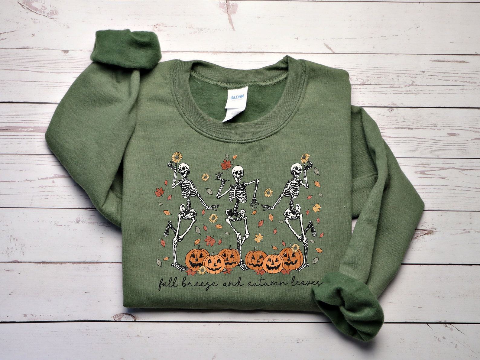 Fall into the Spooky Spirit with Our Dancing Skeletons Sweatshirt Embrace the Autumn Breeze and Autumn Leaves