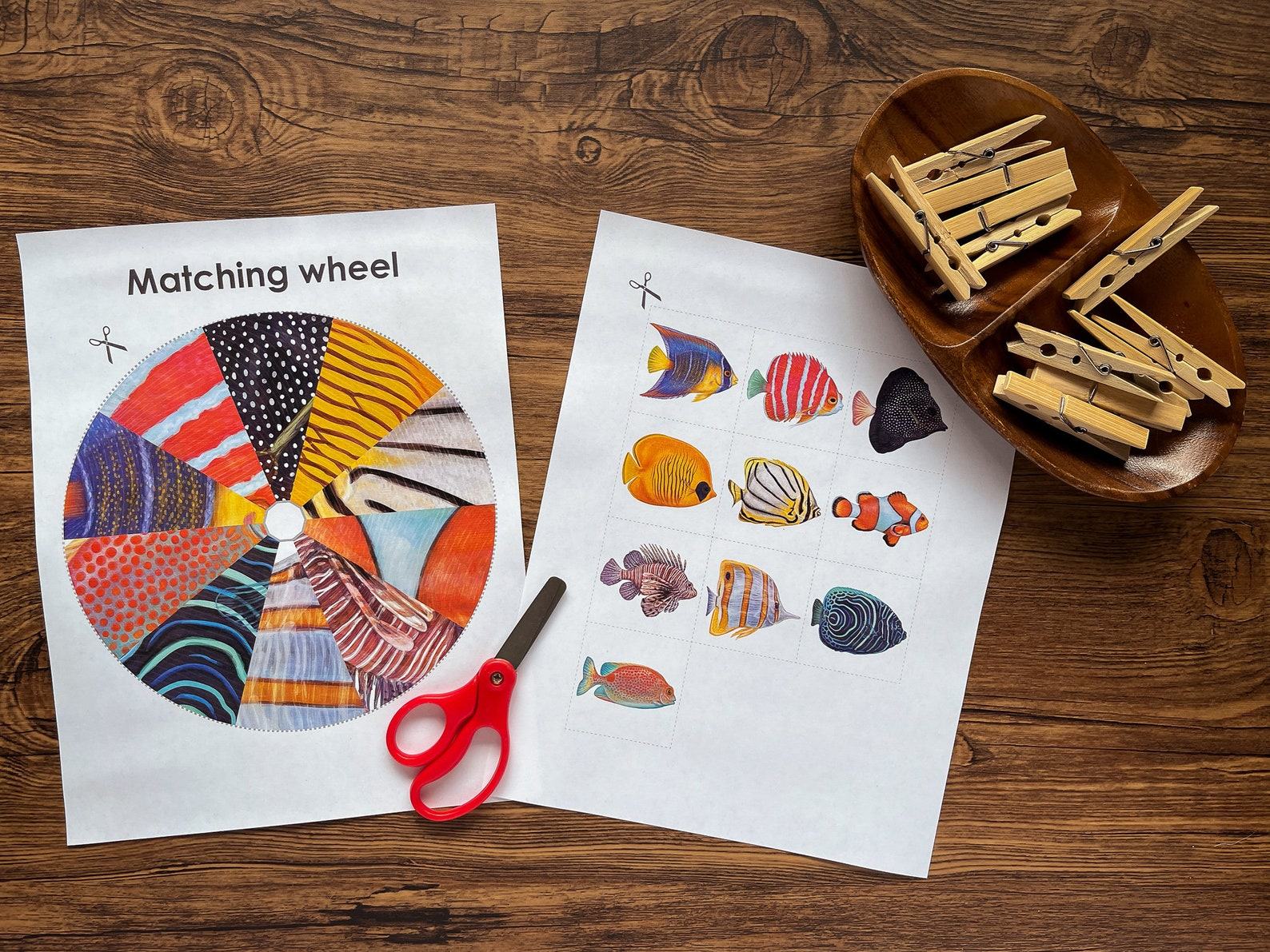 - Engage young minds with this printable fish matching wheel, designed to enhance fine motor skills and pattern recognition.