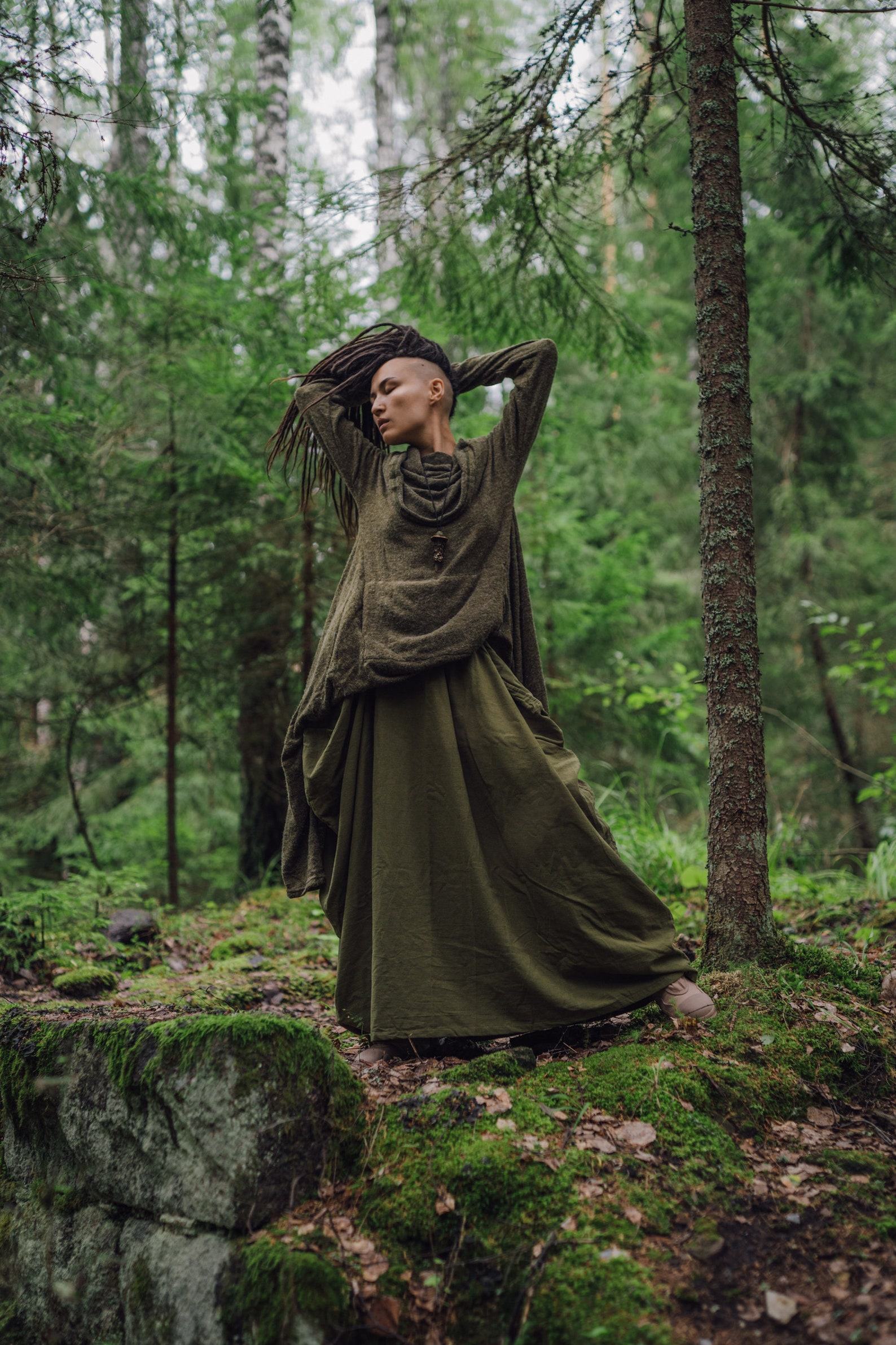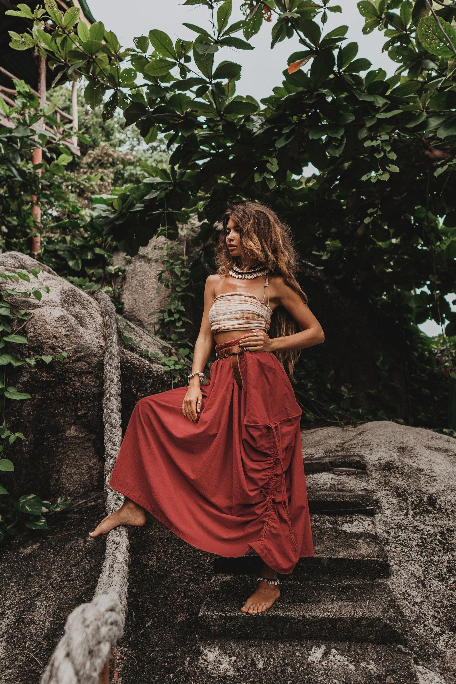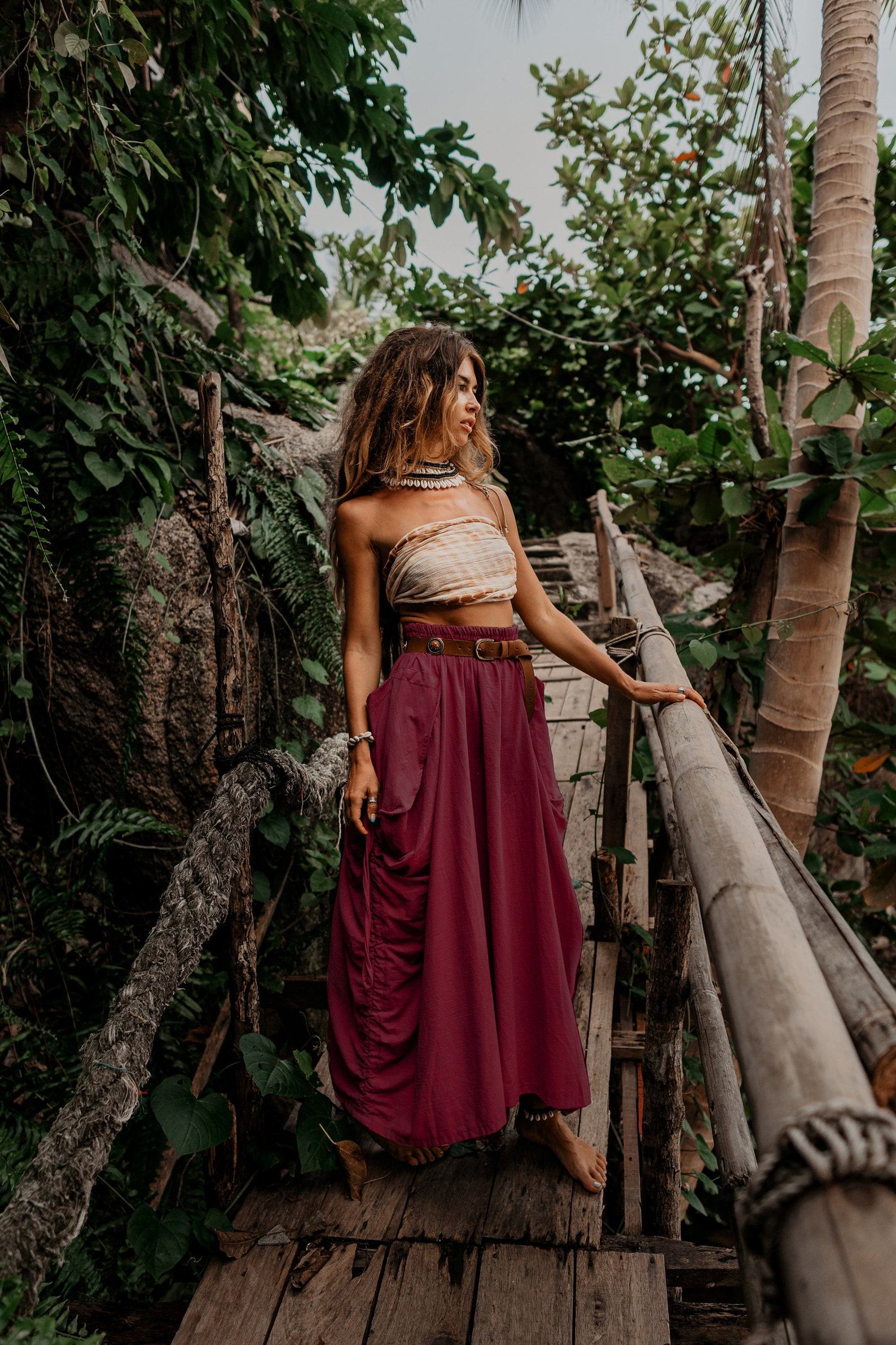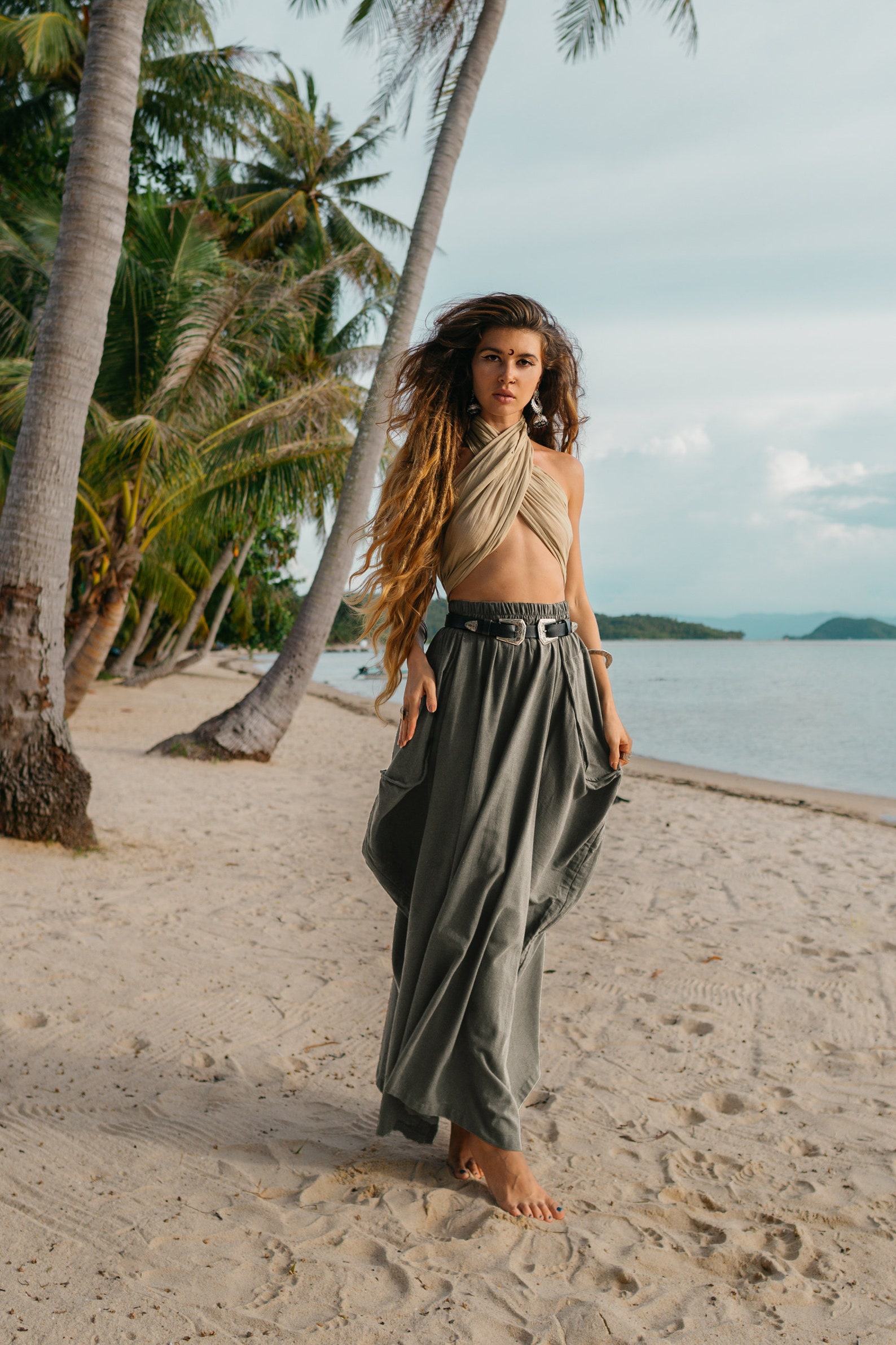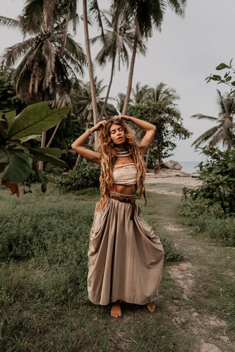 Flowy Bohemian Maxi Skirt Alaina in Organic Beige with Pockets