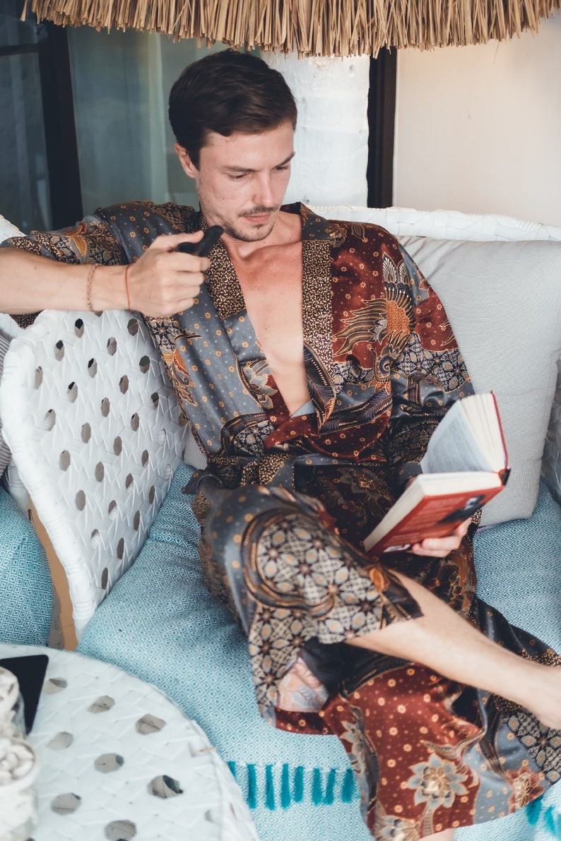 Grey Bohemian Silk Kimono for Men Embrace the Spirit of Wanderlust