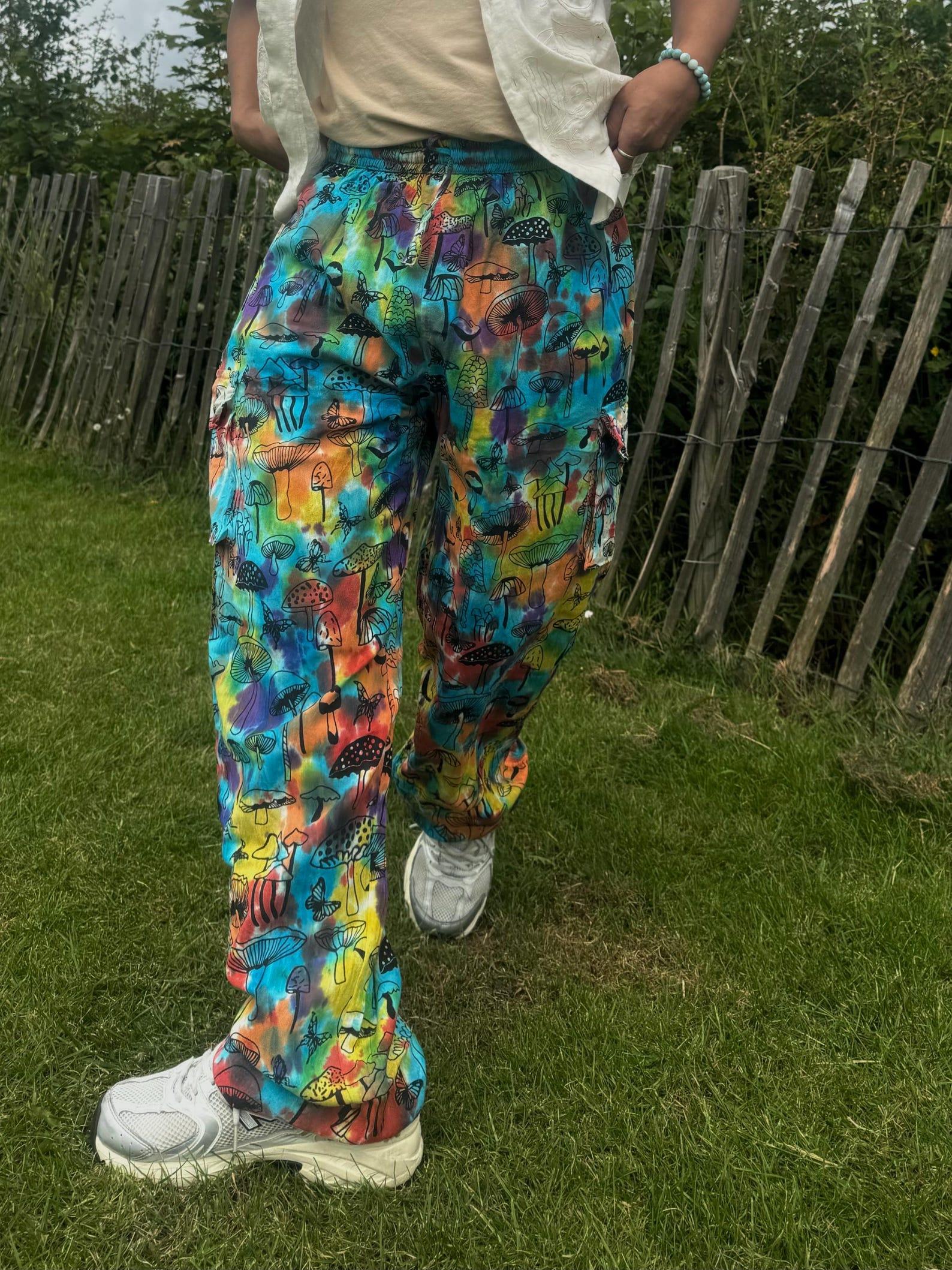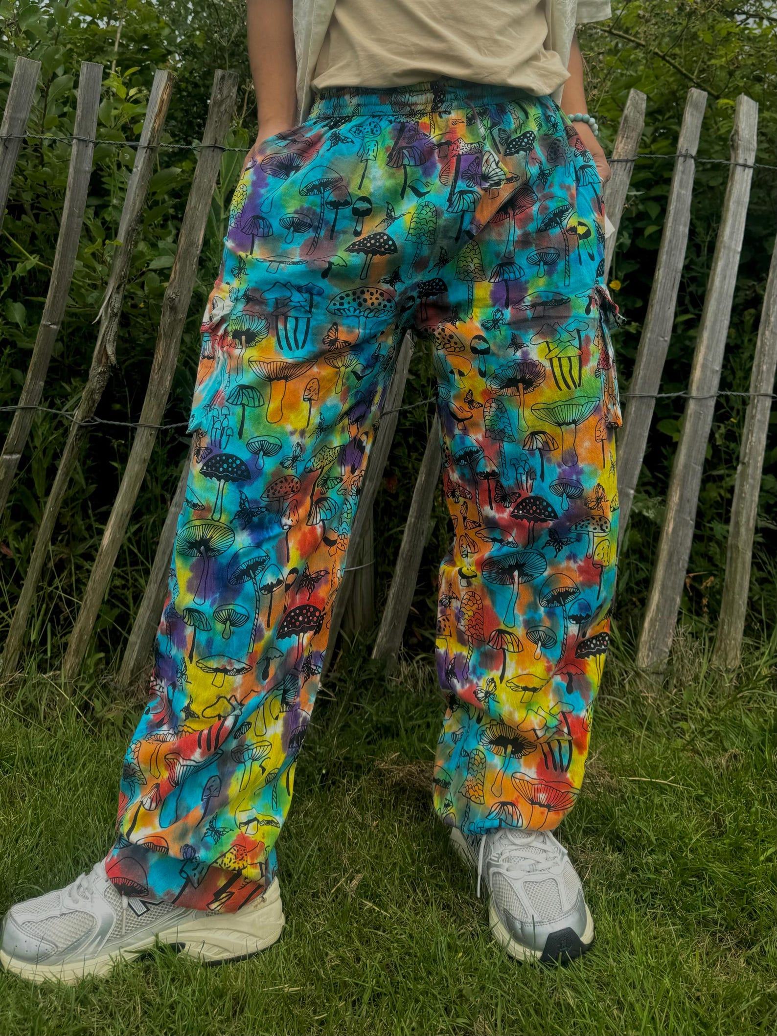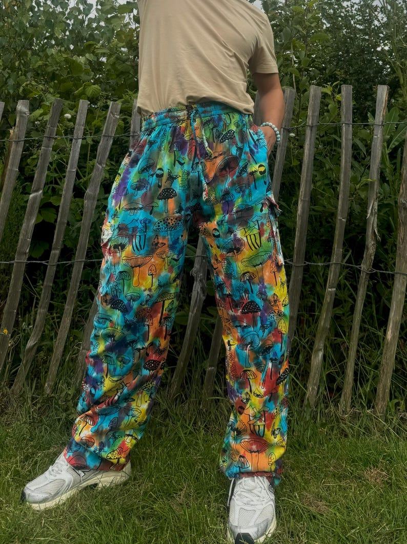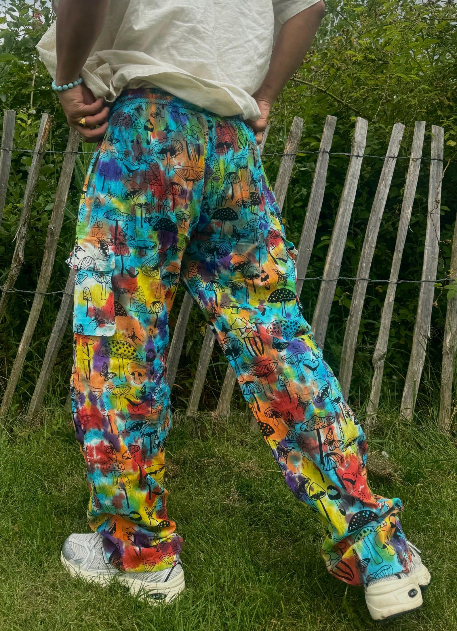 Groovy Tie-Dye Hippie Pants Mushroom Magic for Festival Vibes and Yoga Bliss