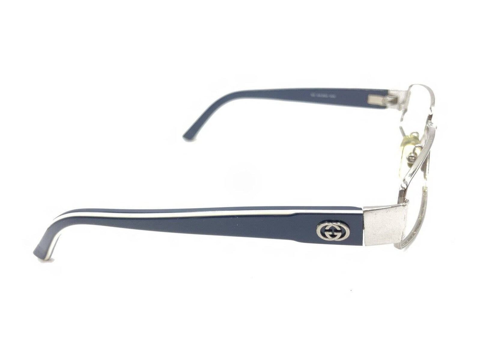 Gucci GG 2854 EU0 Silver Blue Rectangle Eyeglasses Frames 53-17 135 Italy Elevate Your Style with Iconic Italian Craftsmanship