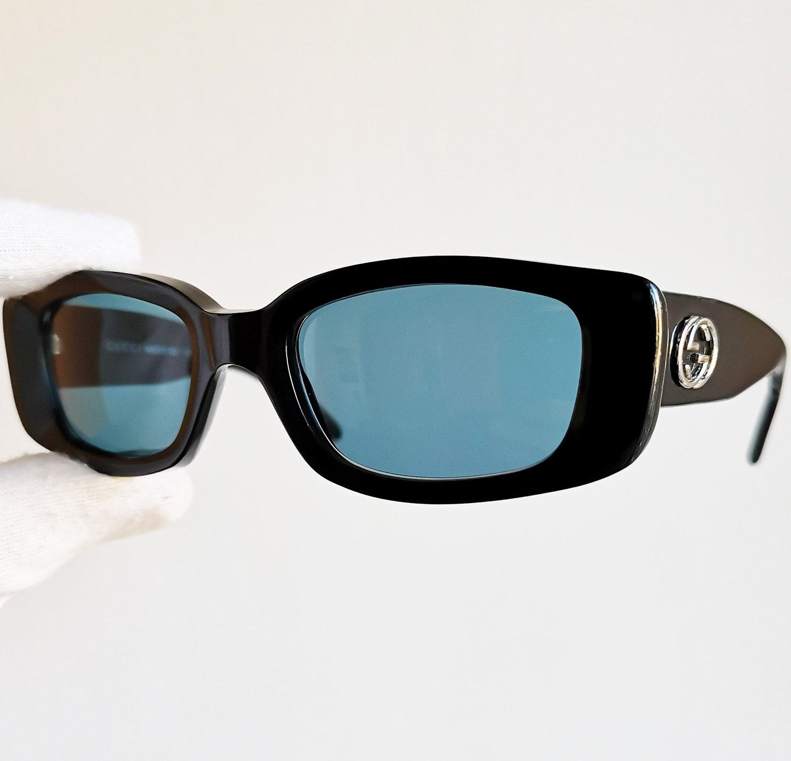 GUCCI Vintage Sunglasses Rare Black Oval GG2409/S Square Rectangular Silver Frame with Cobalt Blue Lens, Worn by Migos, 2Chainz, Rihanna, and Lady Gaga