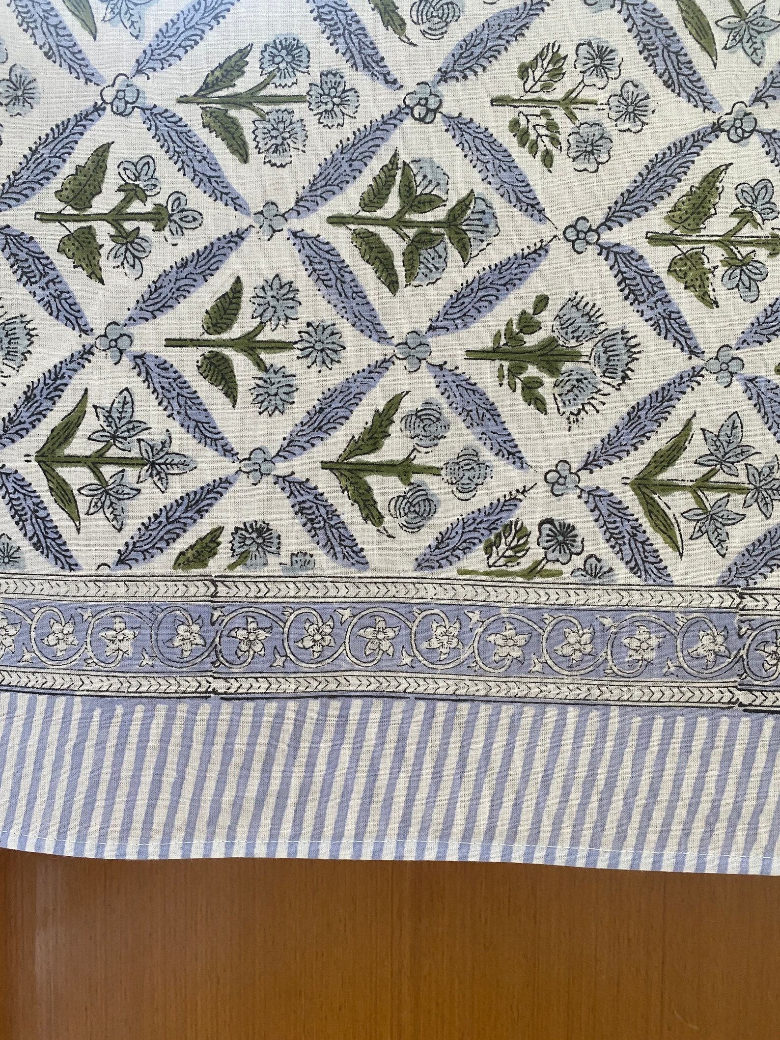 - Handcrafted with intricate hand block printing, each tablecloth is a unique work of art.