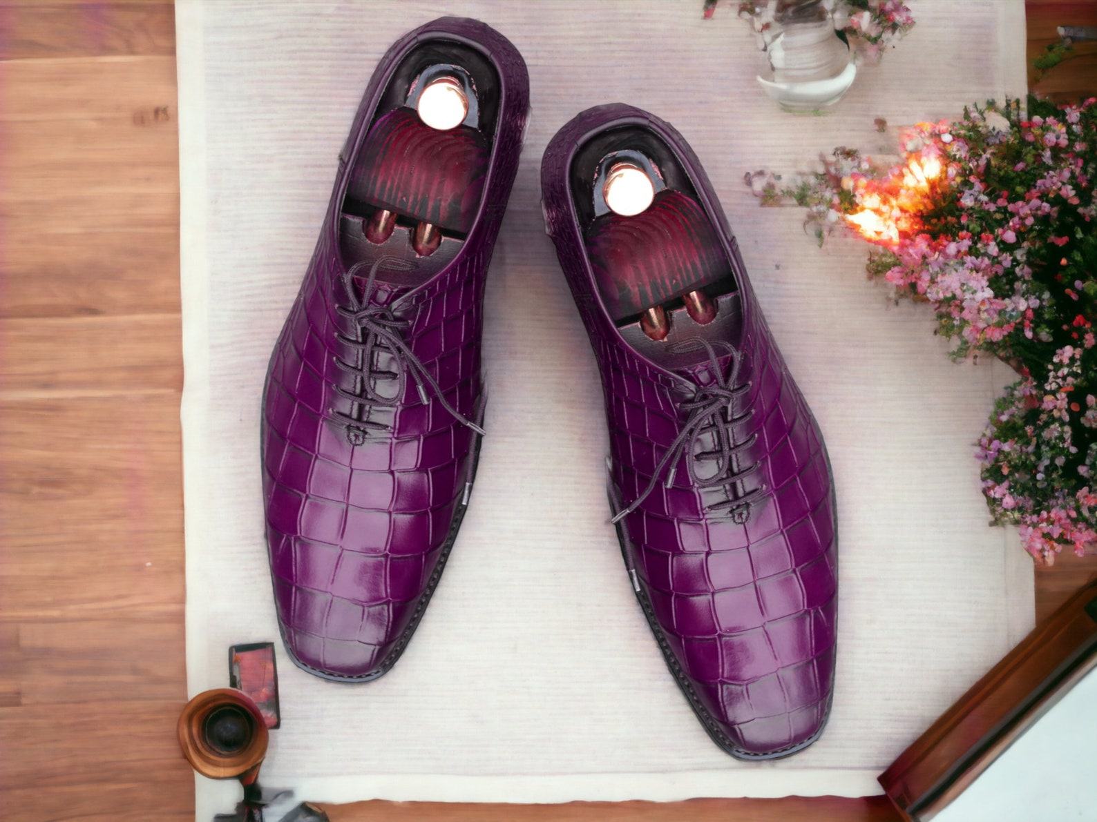 Timeless Whole-Cut Design: Appreciate the clean, seamless silhouette of the whole-cut construction. This classic design emphasizes the natural beauty of the leather and provides a sleek, sophisticated look suitable for any formal occasion. The absence of seams across the vamp creates a smooth, uninterrupted surface that highlights the rich texture and color of the alligator-embossed leather. This minimalist approach to design helps a timeless appeal, making these shoes a versatile addition to your wardrobe.