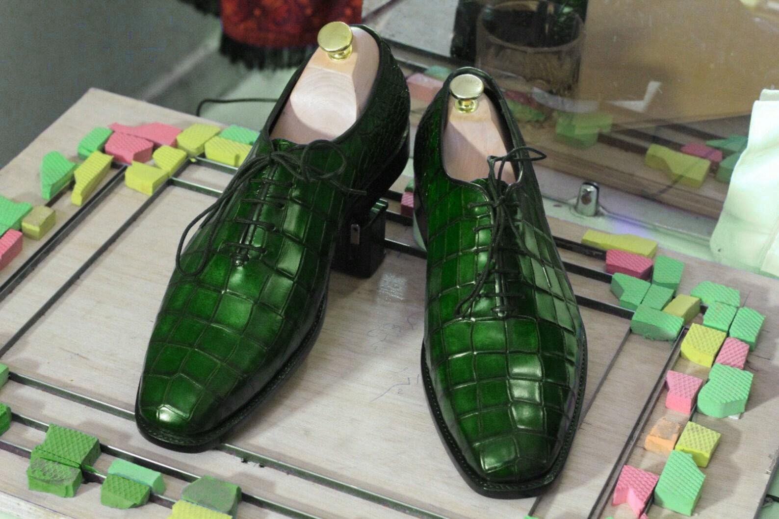 * Unparalleled Comfort and Durability: Enjoy the perfect combination of style and comfort. These leather-lined shoes offer exceptional breathability and support, while the durable construction helps long-lasting wear. The supple leather lining molds to the contours of your feet, providing a customized fit that enhances comfort with every step. The robust sole offers excellent traction and stability, making these shoes suitable for a variety of surfaces. The meticulous stitching and reinforced construction help that these shoes will withstand the test of time, maintaining their elegant appearance and superior performance for years to come. The combination of luxurious materials and expert craftsmanship results in a pair of shoes that are both visually stunning and incredibly comfortable to wear. These handmade blue alligator texture leather shoes are a true investment in style and quality, perfect for discerning individuals who appreciate the finer things in life. The attention to detail extends to every aspect of the shoe, from the perfectly aligned stitching to the carefully selected hardware, help a flawless finish that exudes sophistication and refinement. Whether you’re attending a formal event, a business meeting, or a special occasion, these shoes will elevate your look and make a lasting impression. The unique alligator texture adds a touch of personality and flair, while the classic whole-cut design helps timeless elegance. These shoes are a testament to the art of shoemaking, combining traditional techniques with modern sensibilities to create a truly exceptional product. The rich blue color complements a wide range of outfits, making these shoes a versatile addition to any wardrobe. From dark suits to tailored trousers, these shoes will add a touch of sophistication and style to your ensemble. The handmade construction helps that each pair is unique, with subtle variations that reflect the artisan’s skill and attention to detail. These are not just shoes; they are a work of art, crafted with passion and precision to provide you with the ultimate in style, comfort, and durability. Invest in a pair of these handmade blue alligator texture leather shoes and experience the difference that quality craftsmanship can make.