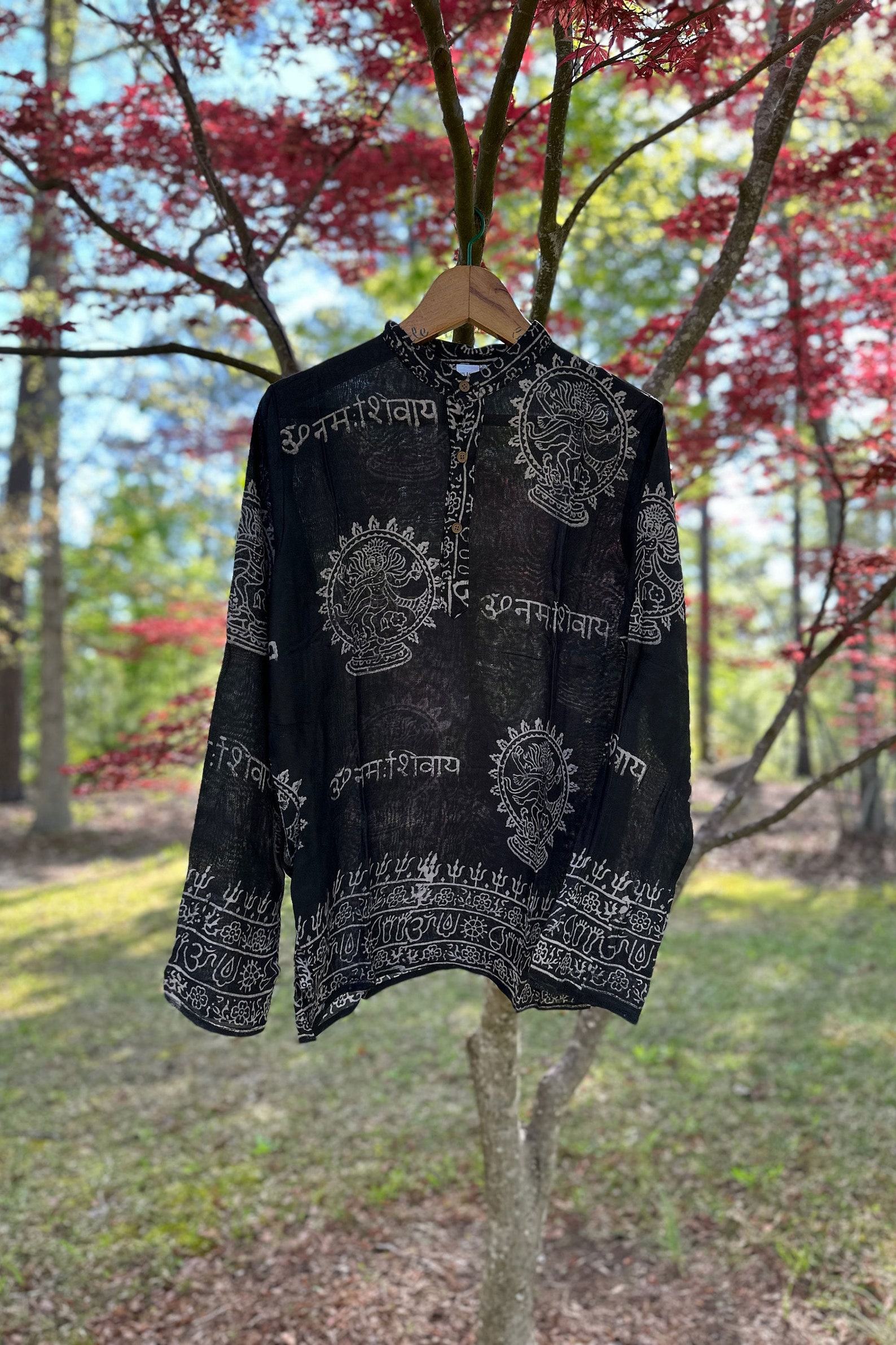 Handmade Vintage Om Shirt Unique Hand Block Printed Boho Tunic for Festivals $29.64