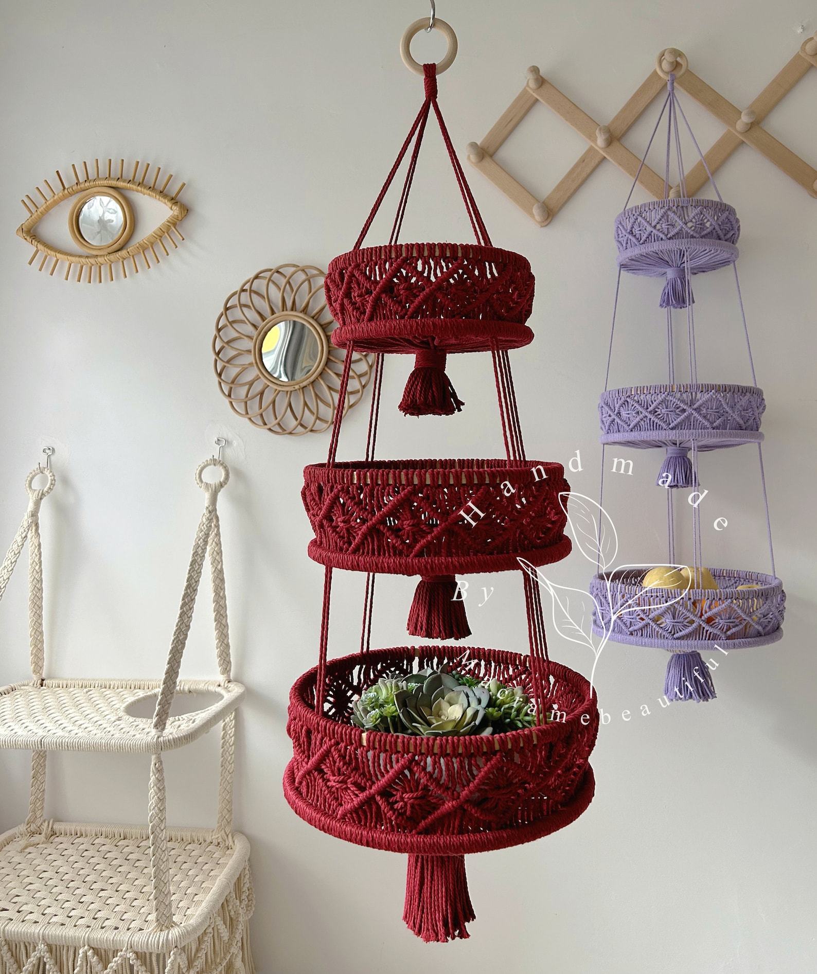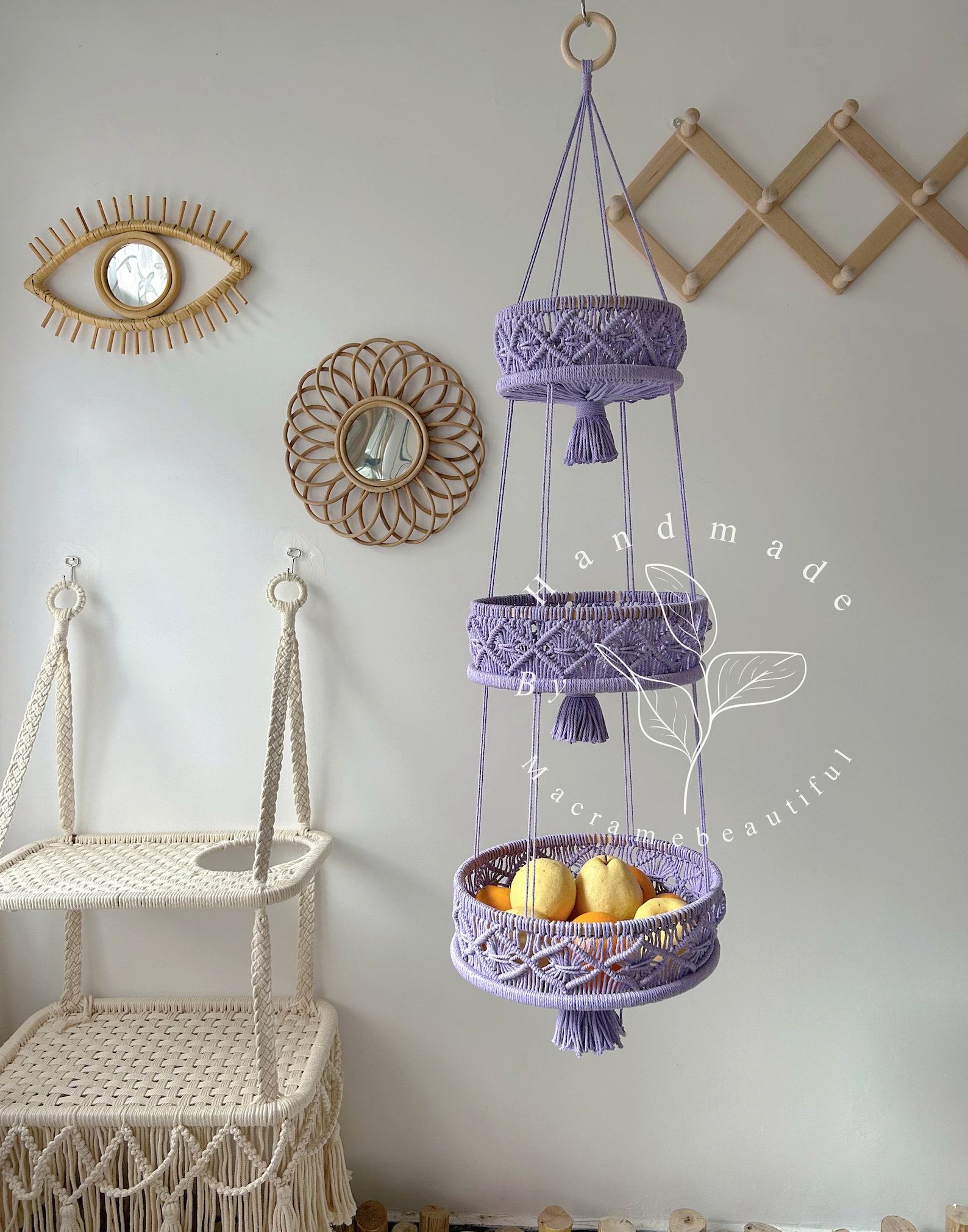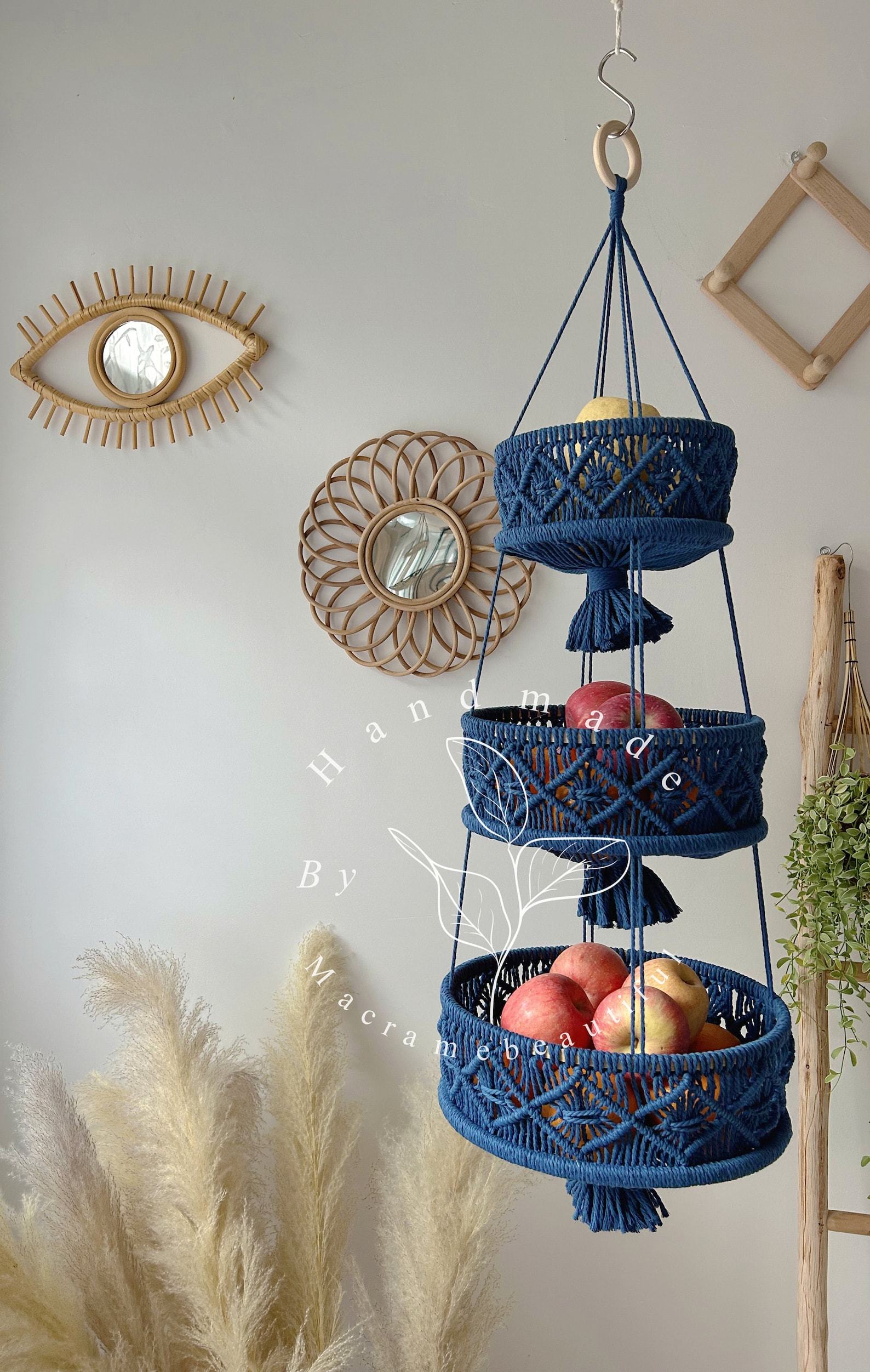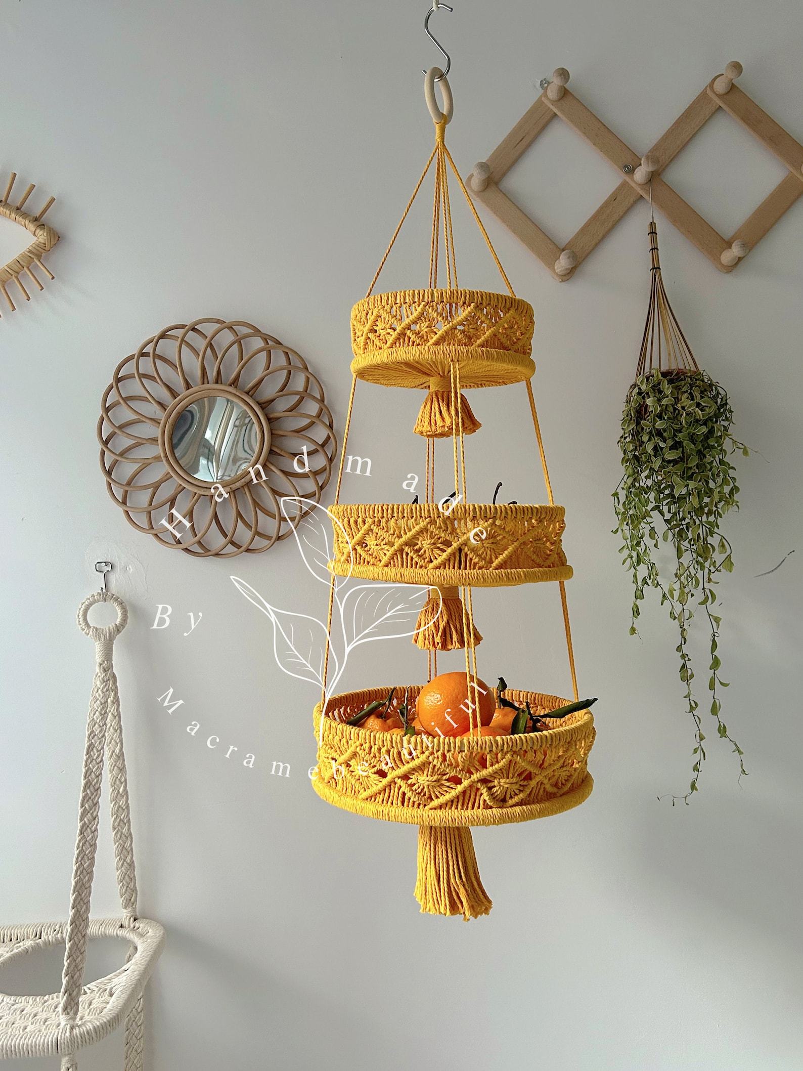 - Hang your fruits and vegetables in style with this unique and practical hanging fruit basket.