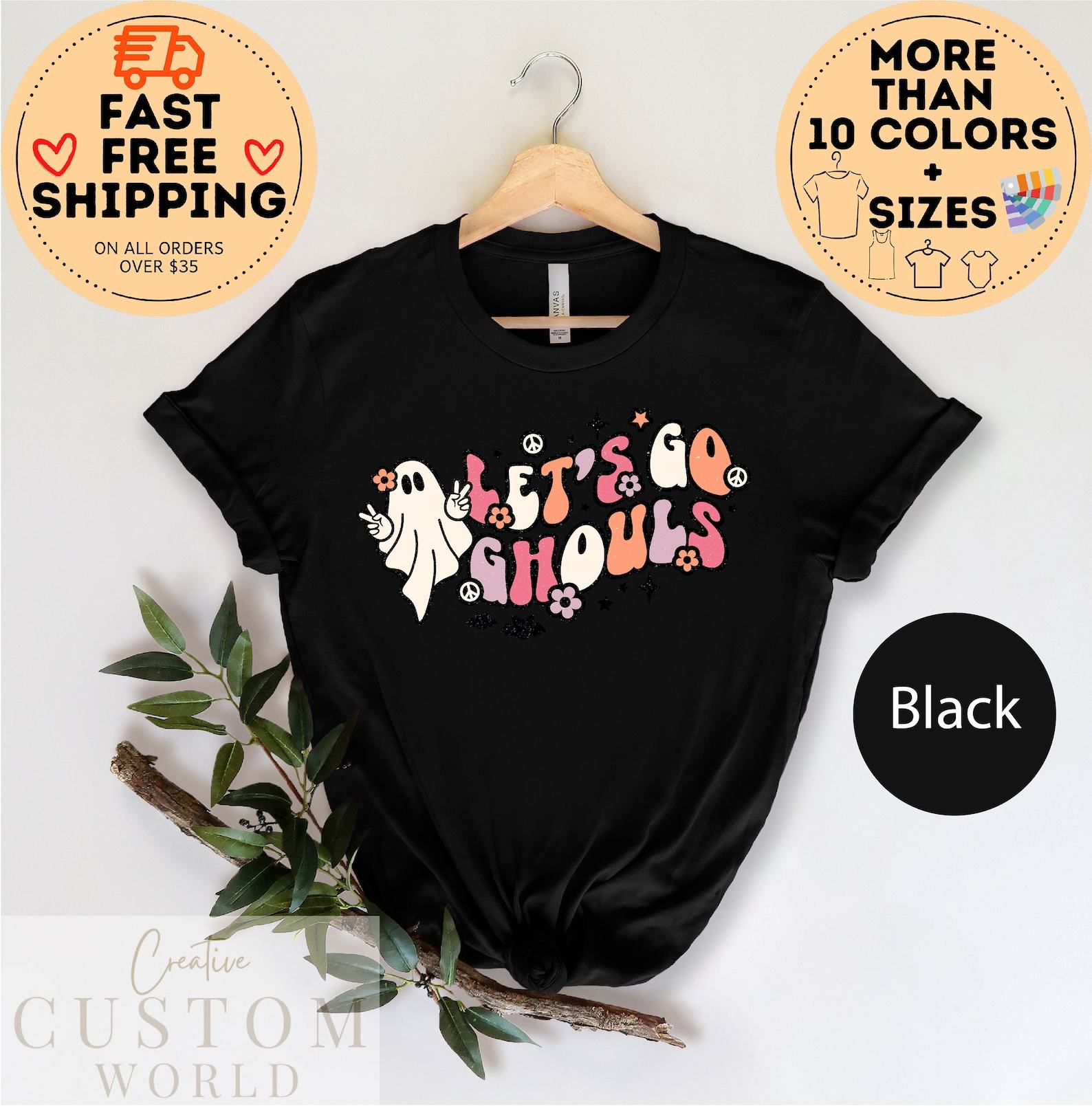 - Celebrate the spooky season with our exclusive “Let’s Go Ghouls” vintage Halloween T-shirt.