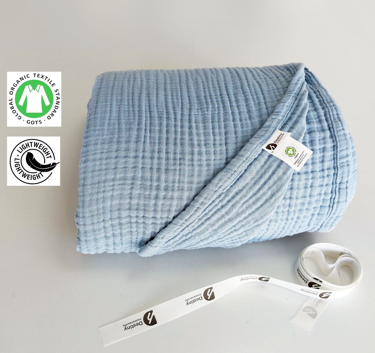 Hawaii Blue Pure Cotton 4-Layer Gauze All-Season Throw Blanket for California King, Queen, Twin, and Toddler Beds