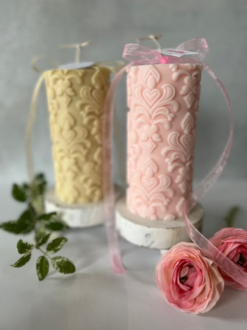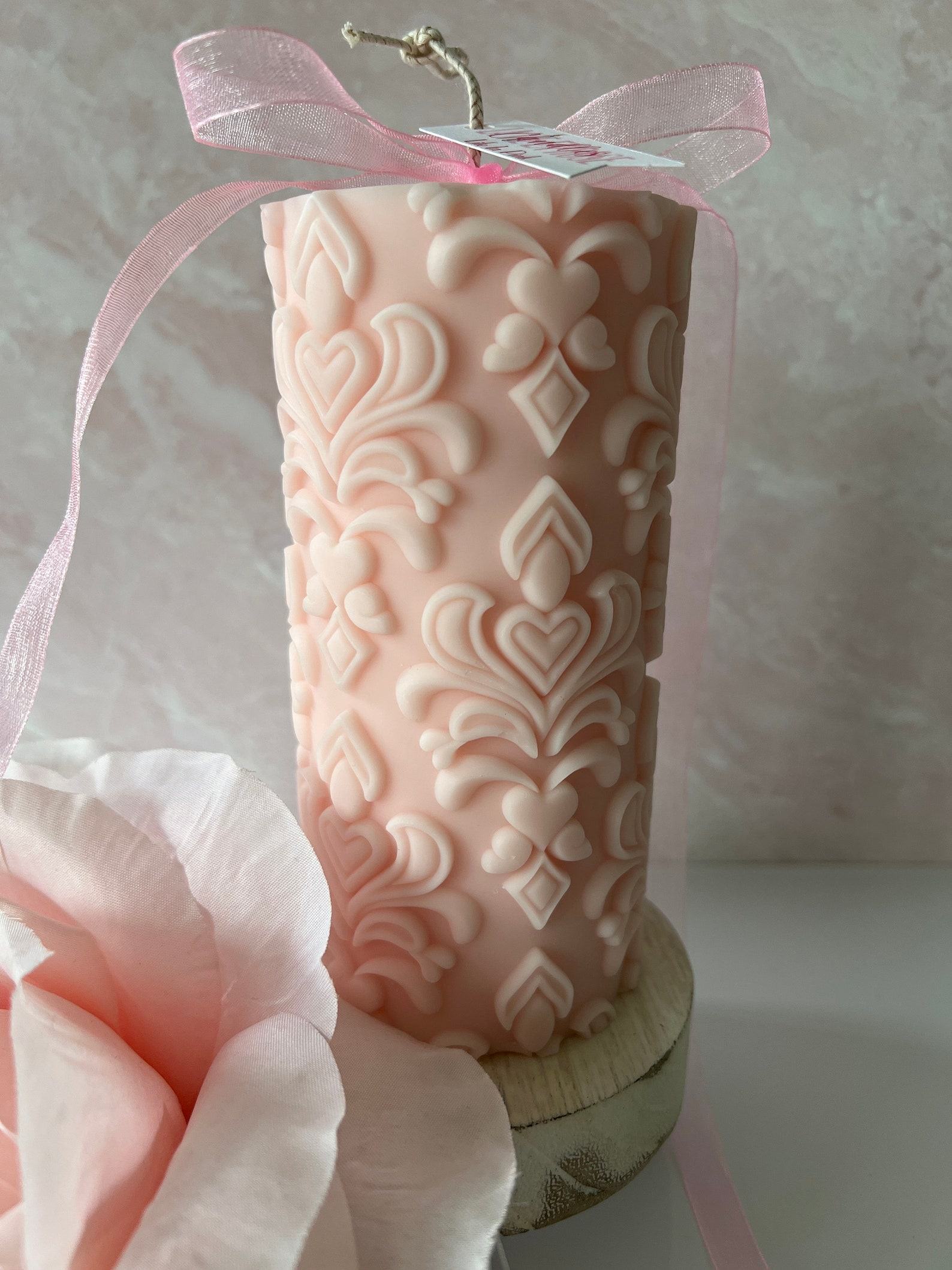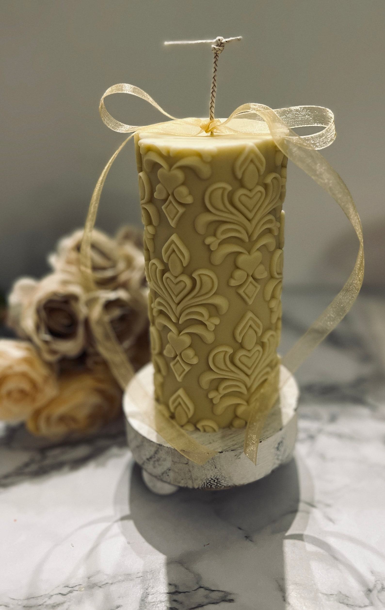 Illuminate Your Home with Timeless Elegance Exquisite Scrollwork Pillar Candle