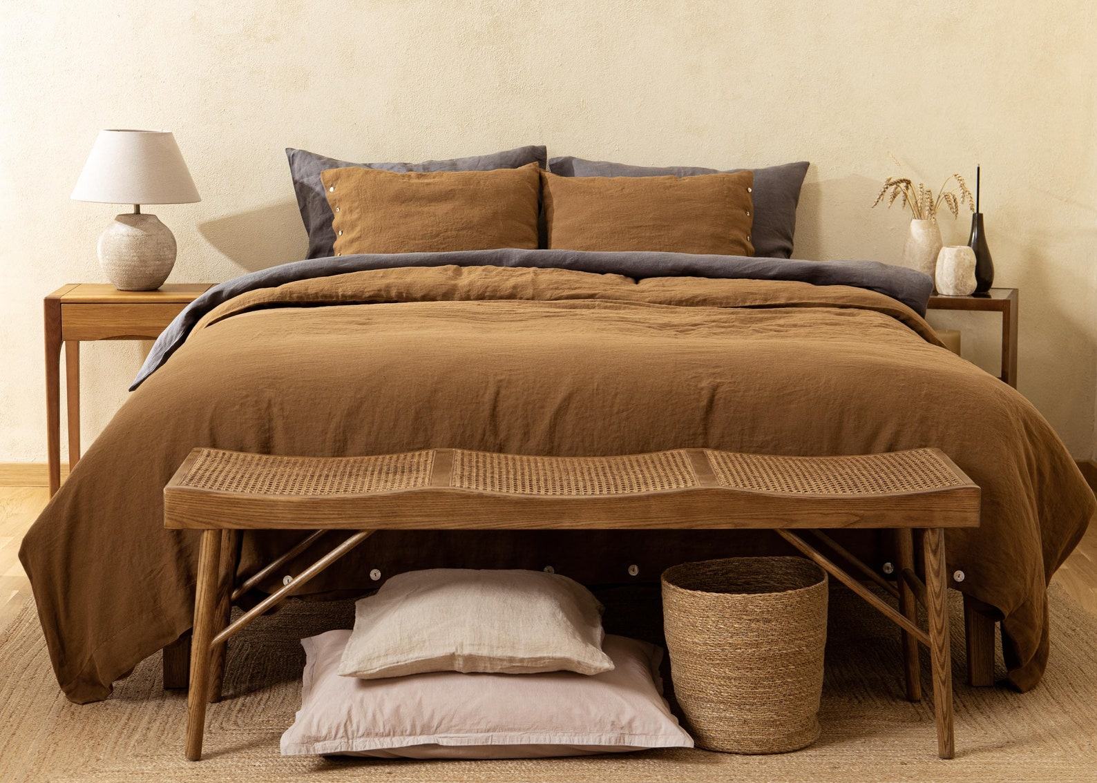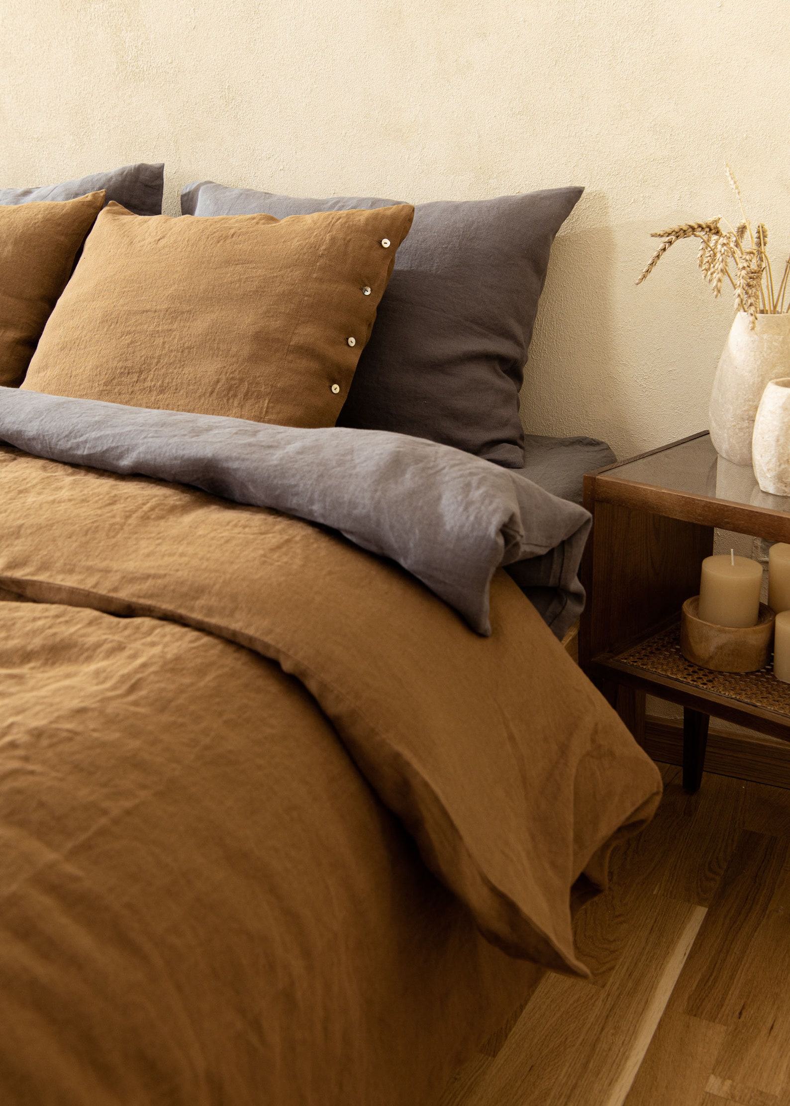 - Indulge in the sumptuousness of our Cinnamon Spice Linen Bedding Set, crafted from the finest pure linen for an unparalleled sleeping experience.