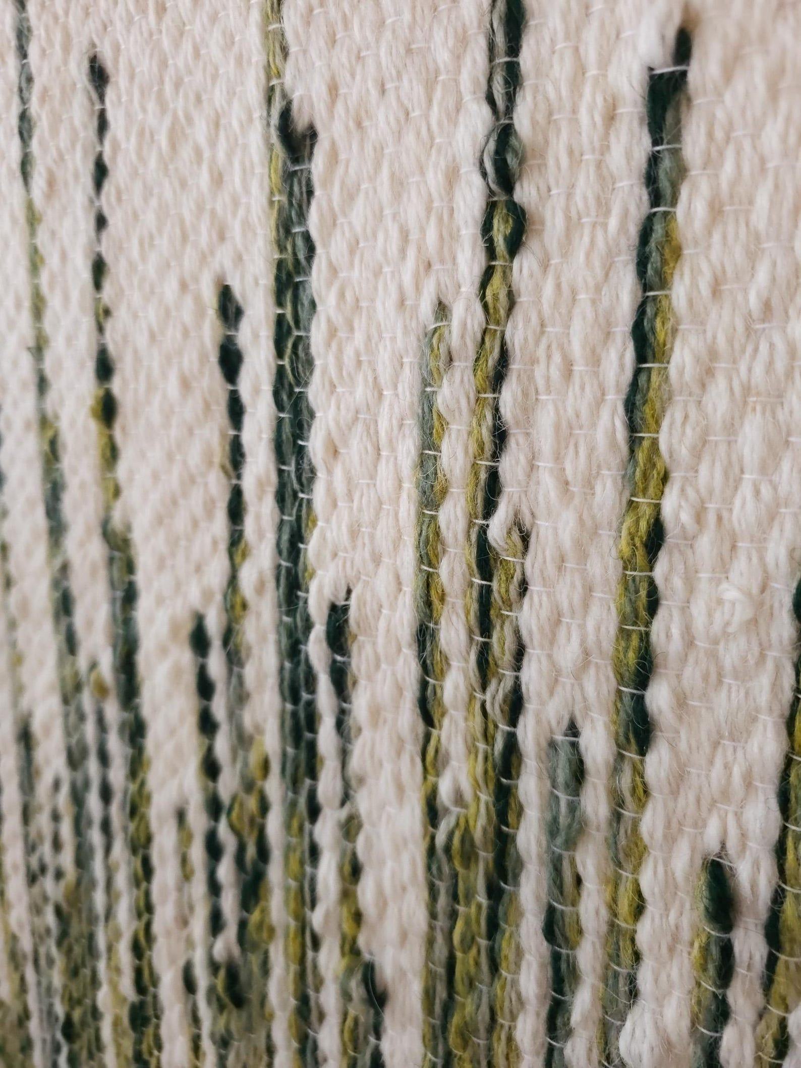 Large Green Wool Wall Tapestry – Boho Fiber Art Decor – Modern Woven Wall Hanging