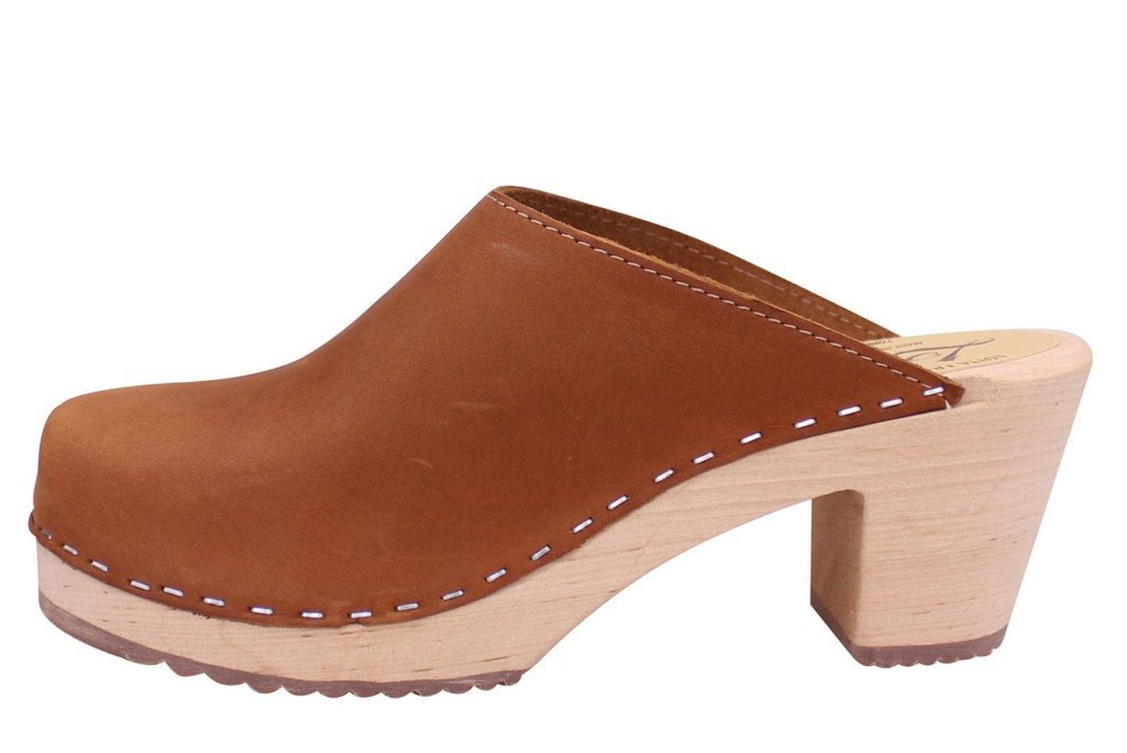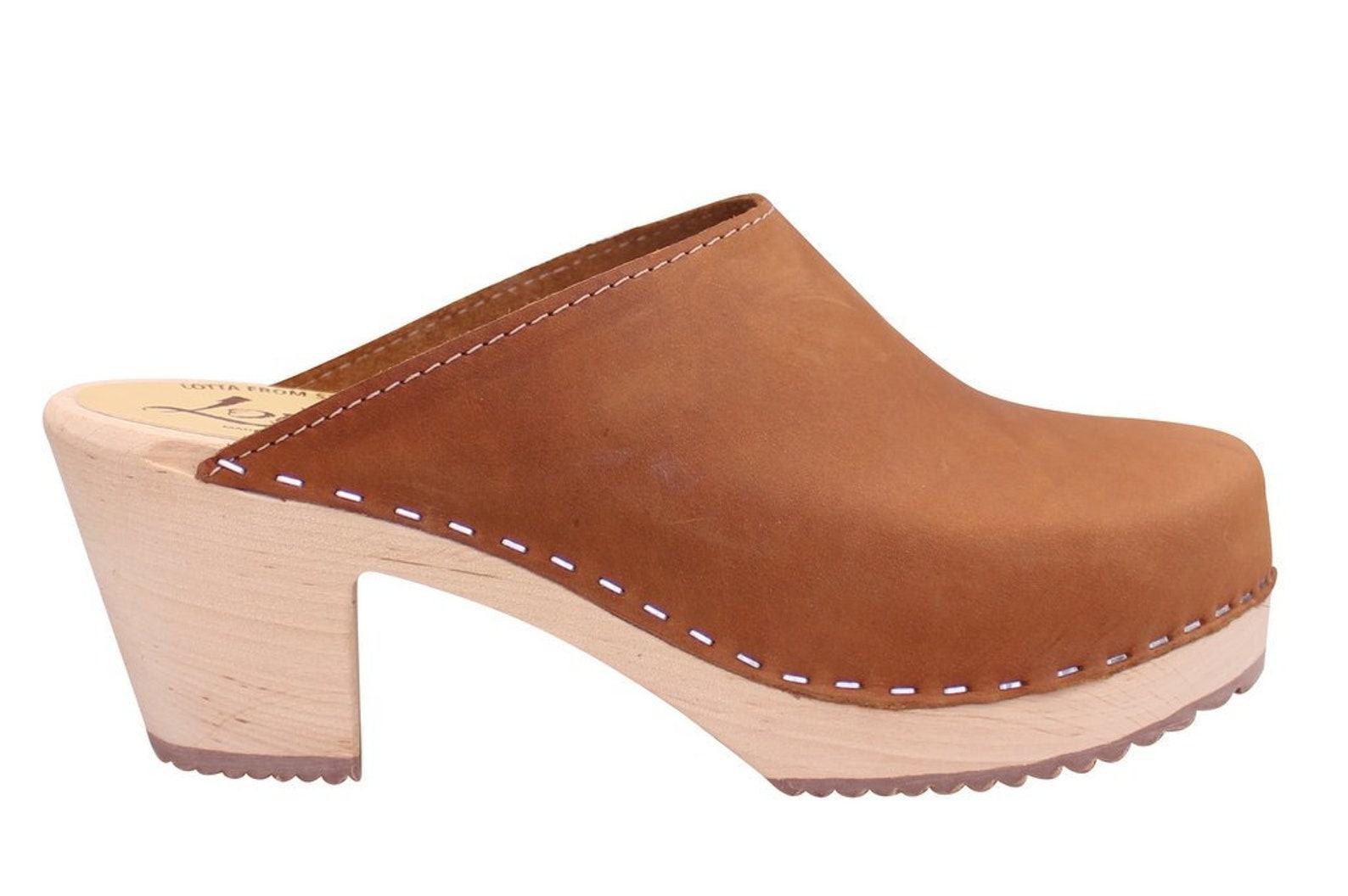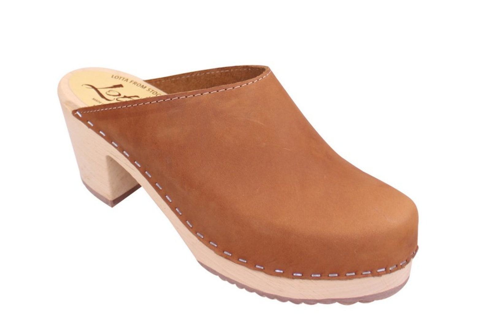 Lotta from Stockholm Classic Brown Oiled Nubuck Leather High Heel Clogs