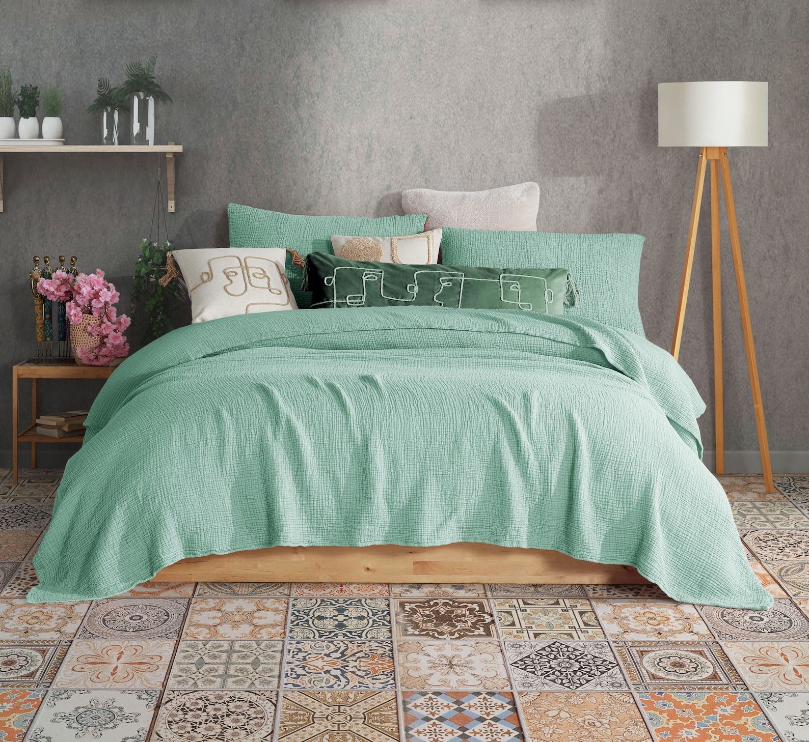 Luxurious Mint Green Pure Cotton Gauze Throw Comfort and Style for Every Home